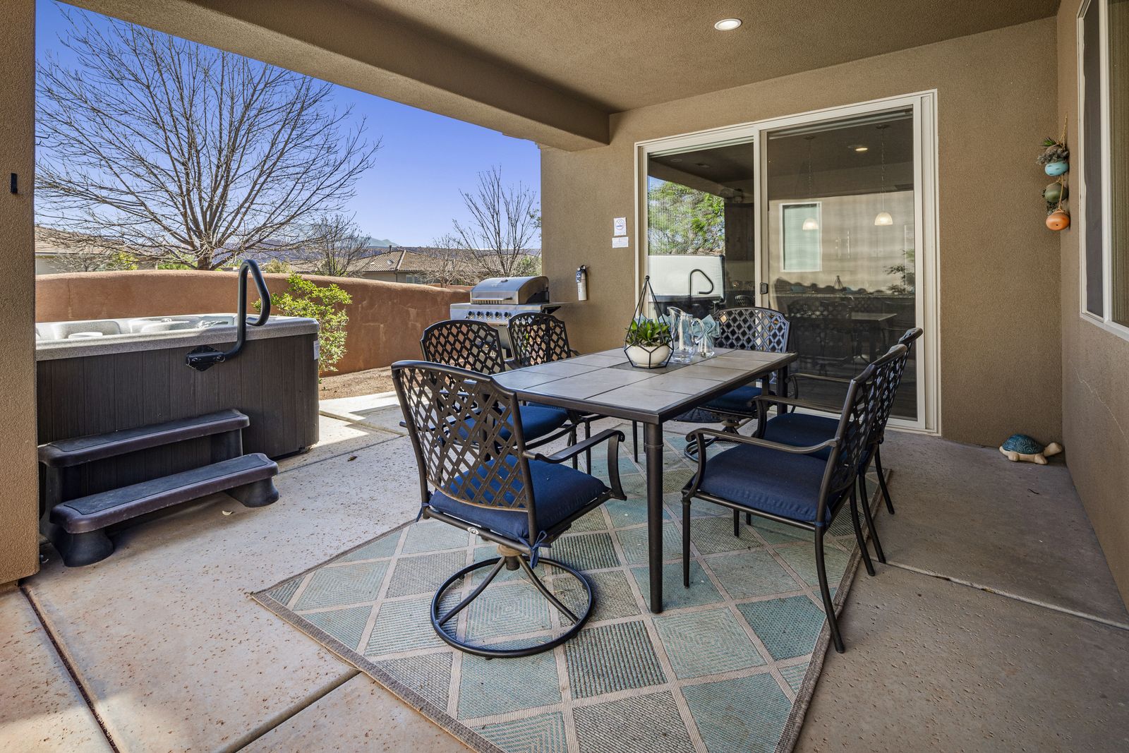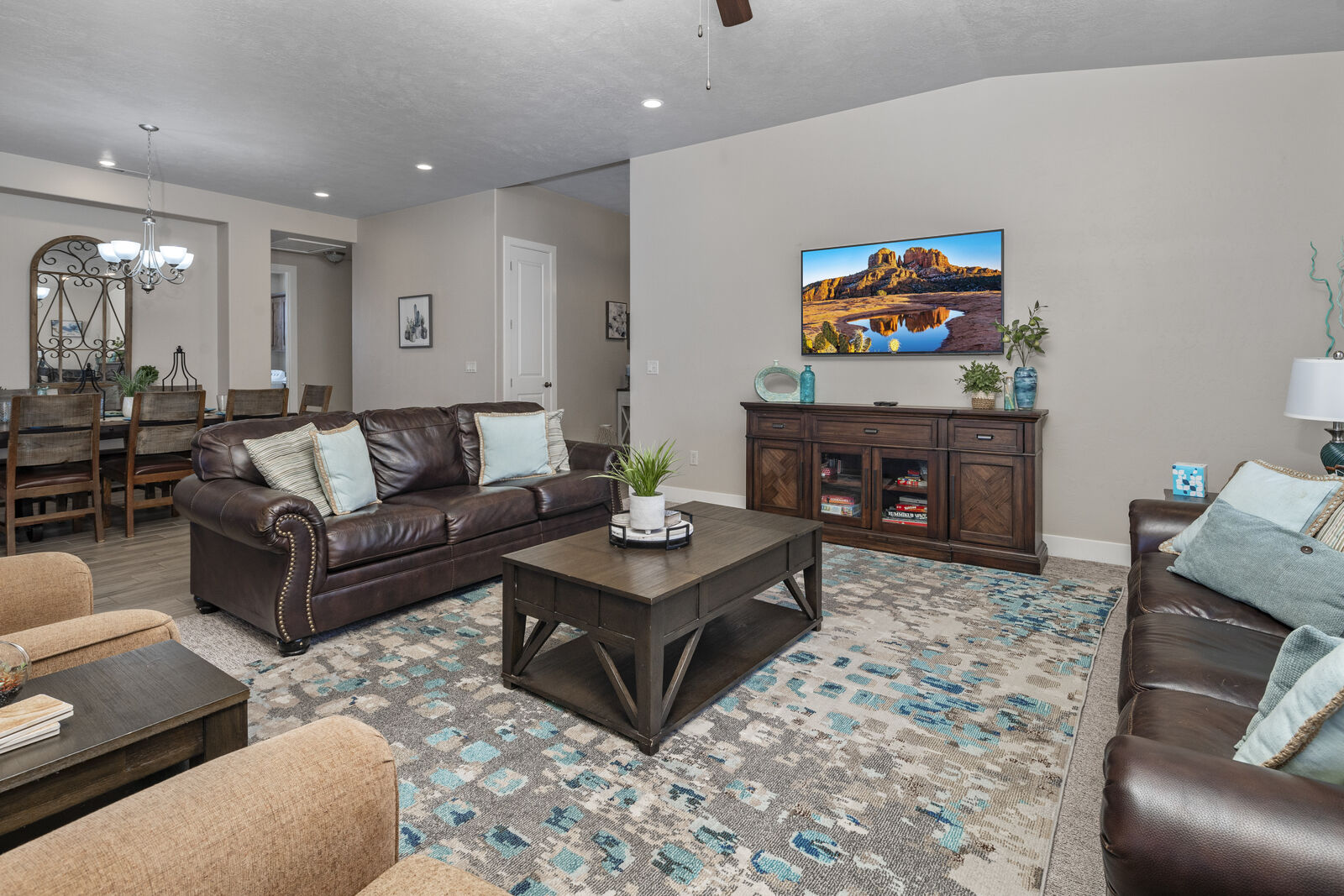 Spend your next Southern Utah vacation at Sunrise Oasis at Paradise Village! This elegant getaway features a luxurious welcoming atmosphere and can fit as many as 10 people comfortably and up to 14 with the assistance of 2 queen sofa sleepers. Each king bedroom features an attached bathroom and a TV with access to Netflix, and more! The bunk room has a shared bathroom in the hallway. While the living room has access to a smart TV and Netflix. Enjoy a night dining out in one of the area's many delicious restaurants, or try out your culinary skills in the spacious, well stocked kitchen! The outdoor gas barbecue and dining area will provide hours of feasting and fun with family and friends.