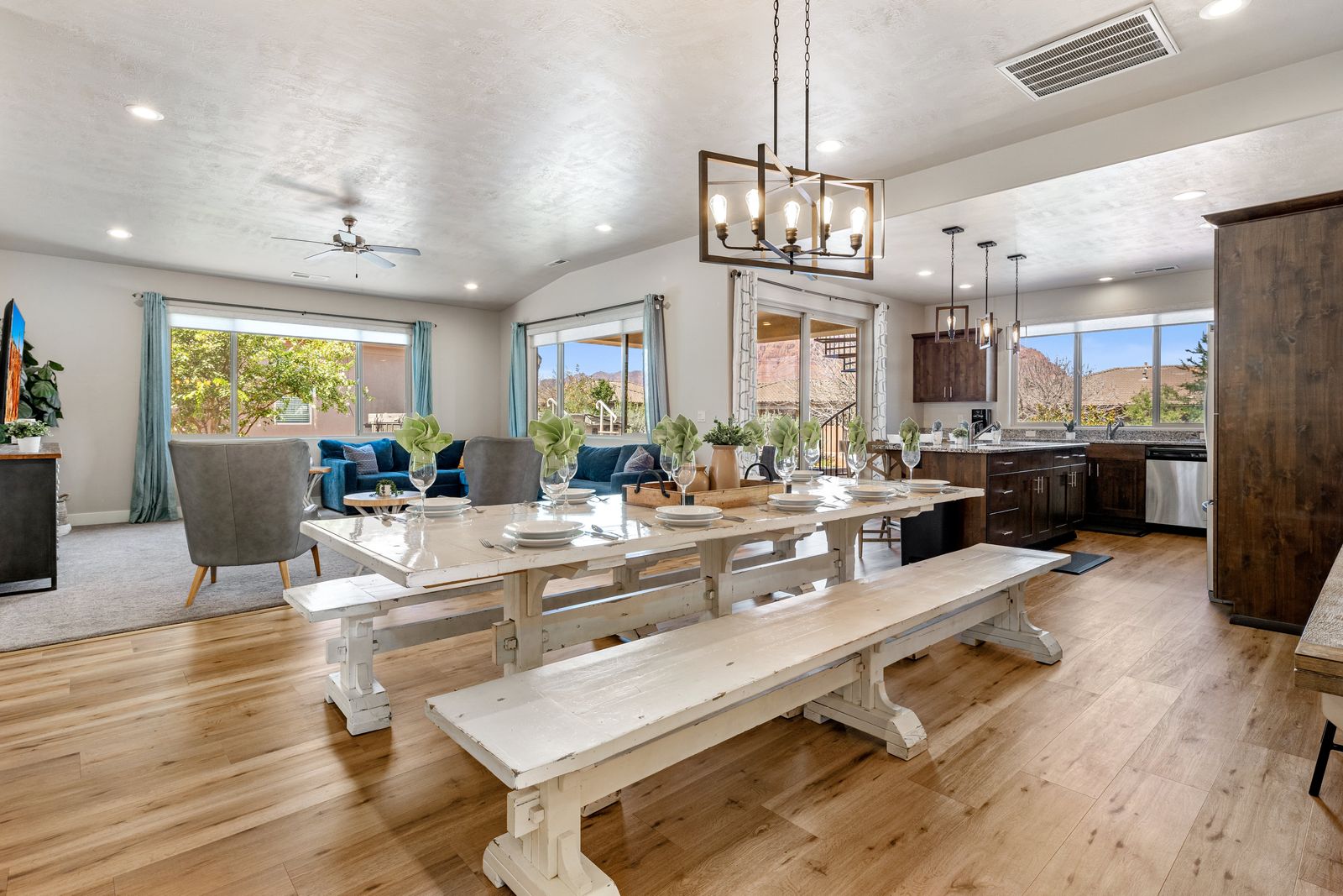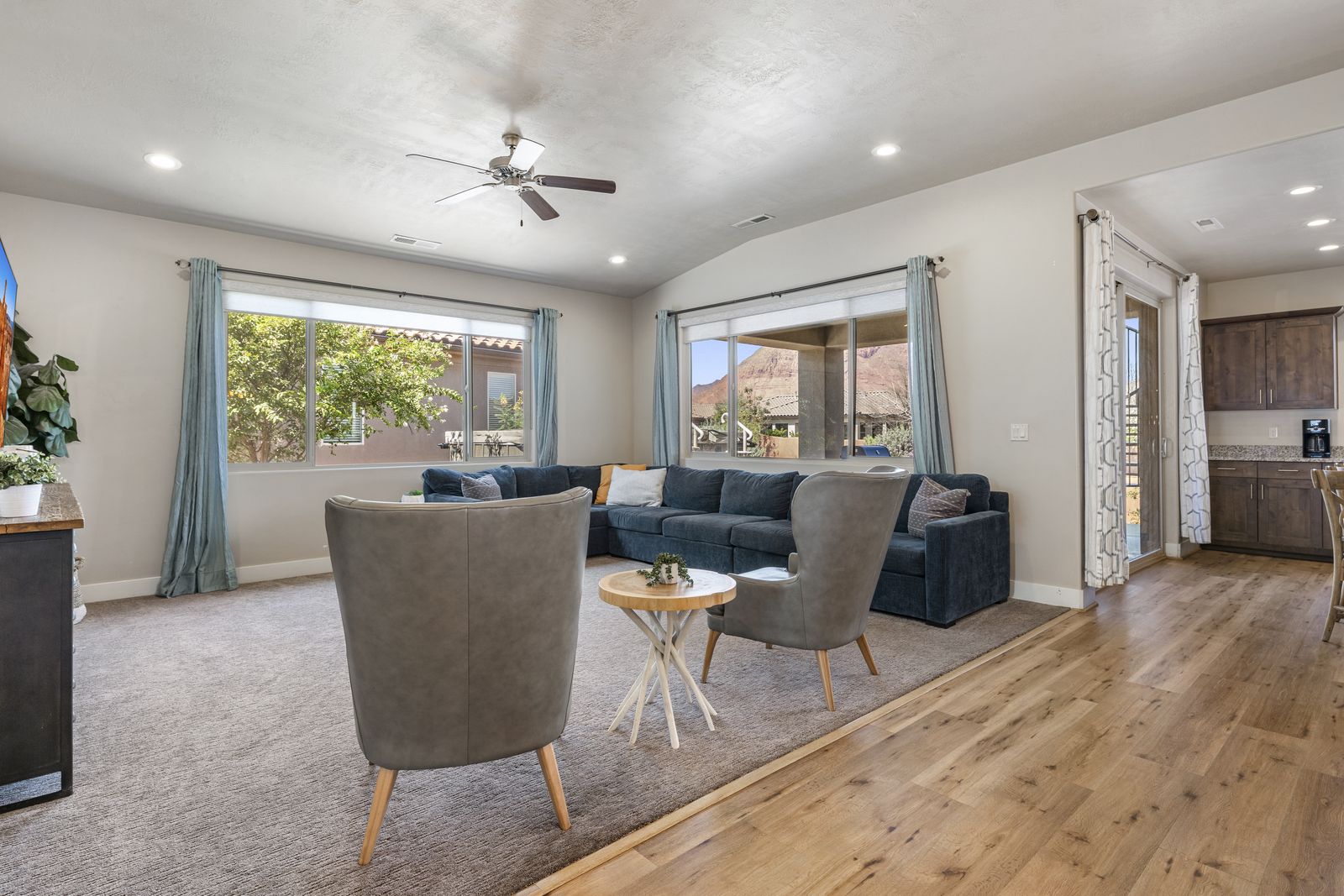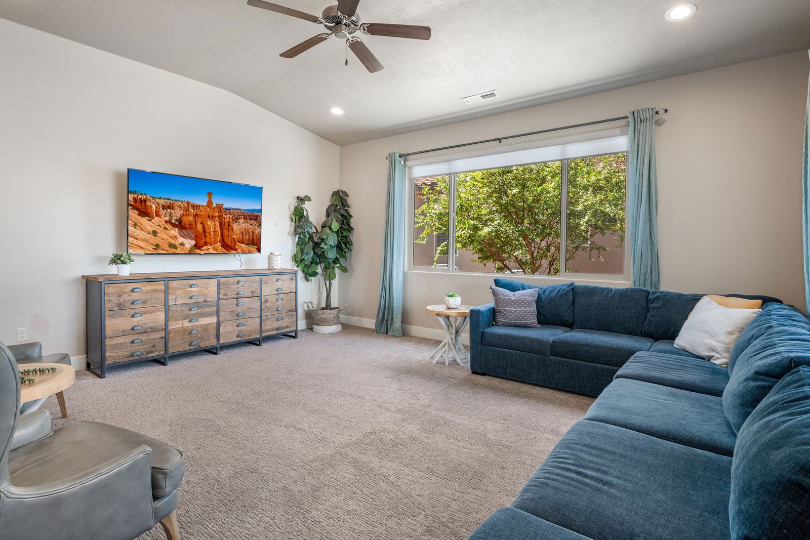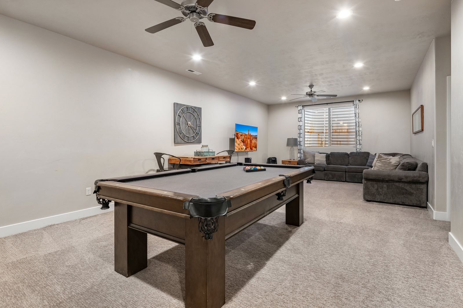 For your next Southern Utah getaway, book Casa Clara at Paradise Village today! This elegant home lies just a short drive from Snow Canyon State Park, Tuacahn Center for the Arts, and Gunlock Reservoir, each a great place to enjoy the views of sunny Saint George! You can play after a day of outdoor fun in the shared pool, or drift blissfully through the lazy river for a moment of relaxation. With so many available amenities, it is easy to enjoy a day of fun and exercise without ever having to drive! Spend your day visiting the pickleball or sand volleyball courts available for your use or get your heart pumping with a workout at Paradise Village’s provided gym. After a day in the beautiful mountains of Southern Utah, you can spend your evenings under the stars in this properties’ private 20-person swim spa or cook some delicious food on the private gas grill, or stay in and have a movie night in the theater room.