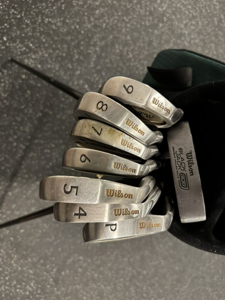 Wilson ProStaff ladies flex graphite set (circa 2008) in good playable condition: • Titanium composite woods: Driver (1), 3 wood, 5 wood • Oversize irons: 4, 5, 6, 7, 8, 9 Pitching Wedge • Black Jack 306 mallet putter • FireBird lightweight bag • plus 2 youth drivers