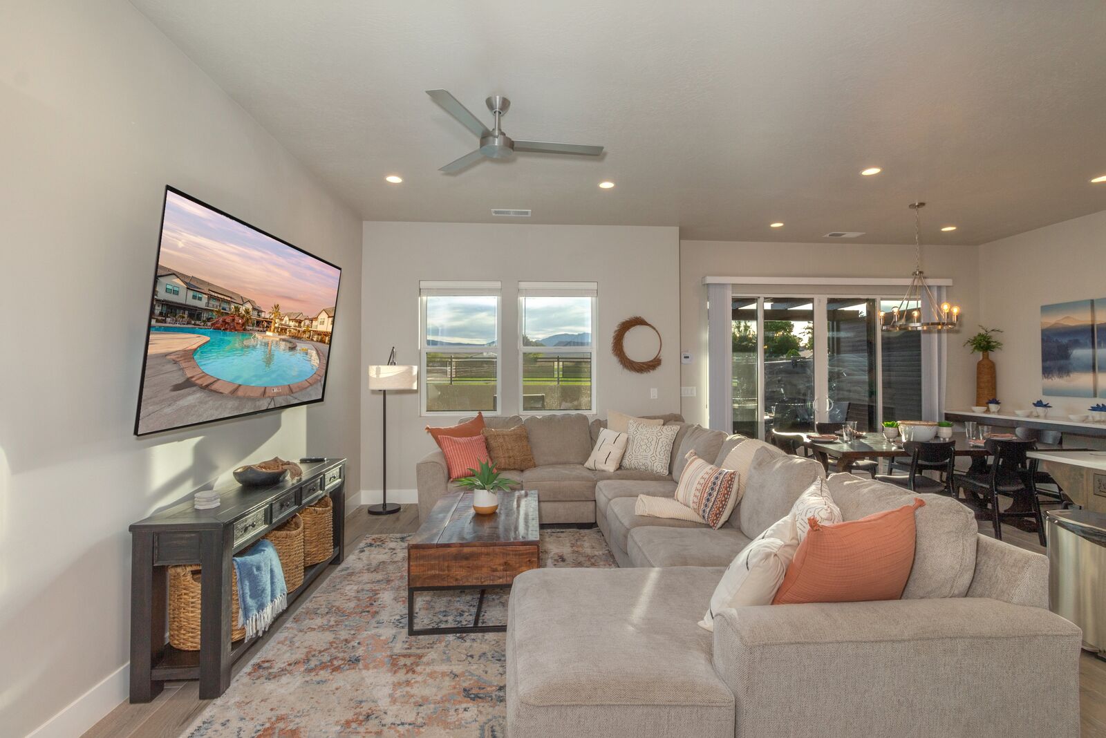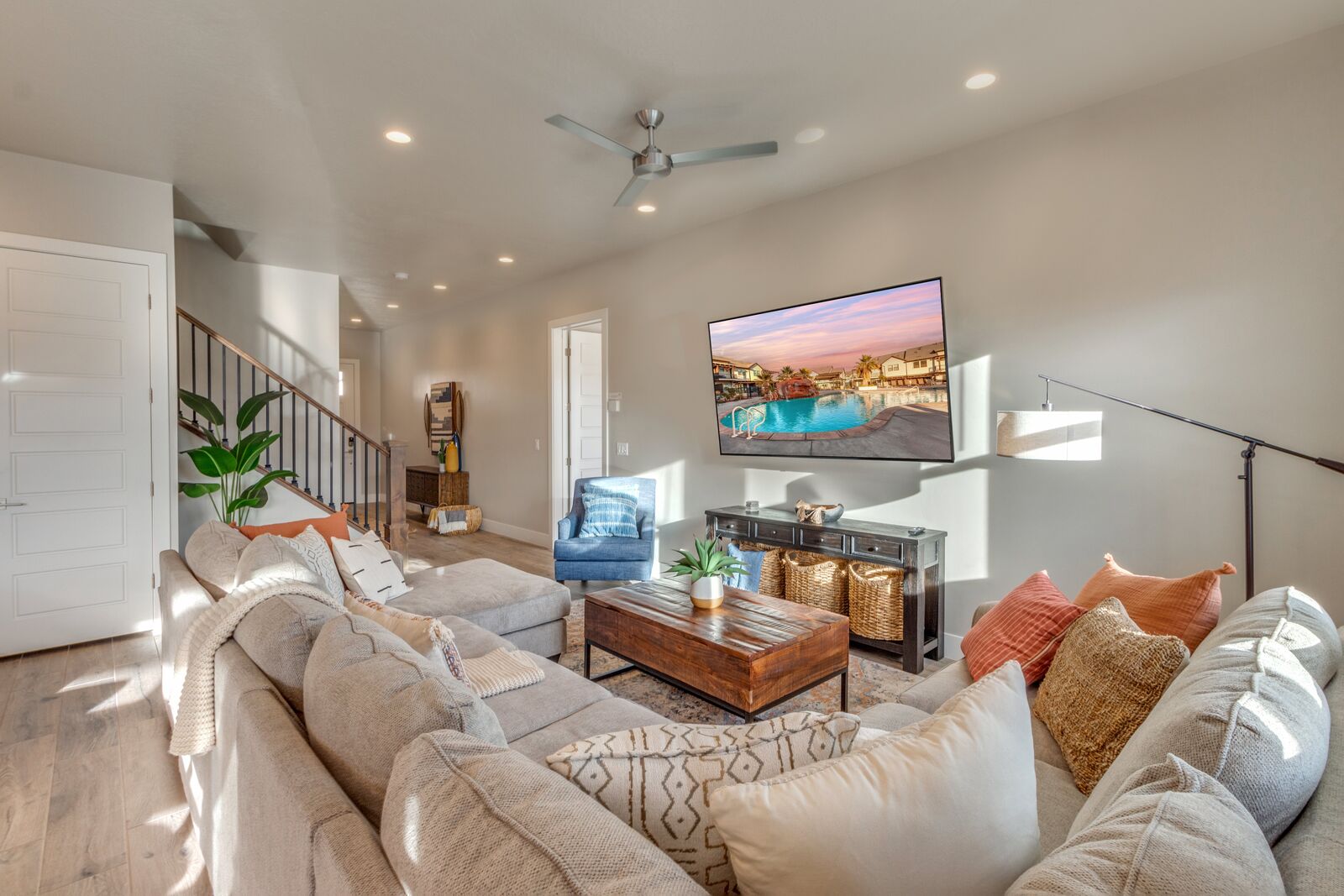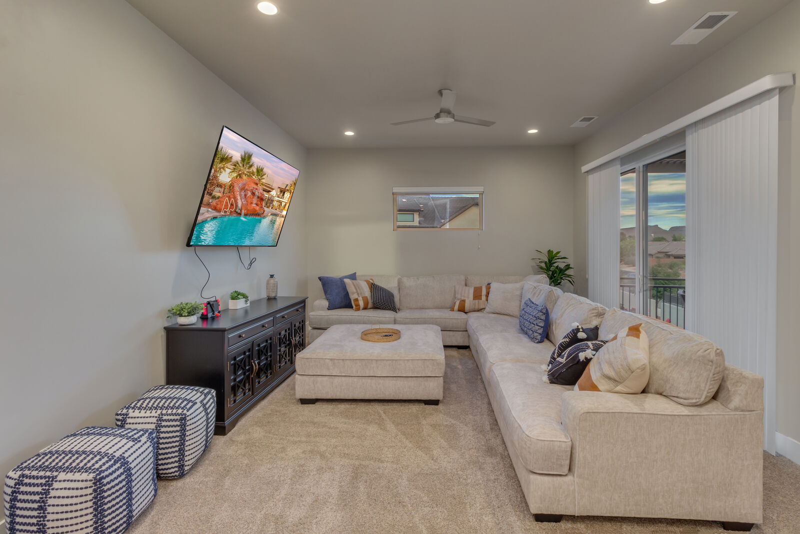 Spend your next southern Utah vacation at Oasis at Ocotillo Springs, the perfect place to enjoy the desert sun! Spend your days exploring the natural beauty of local wonders by hiking through famous Zion National Park, splashing in the waves of Sand Hollow State Park, or taking in the scenery during a show at Tuacahn in their natural canyon amphitheater. Gaze up at the stars from the comfort of the hot tub and then cozy up on the couch in front of one of the smart TVs for a movie night. With so many things to do, as well as countless local wonders to explore, you will come away from your next vacation renewed and refreshed!