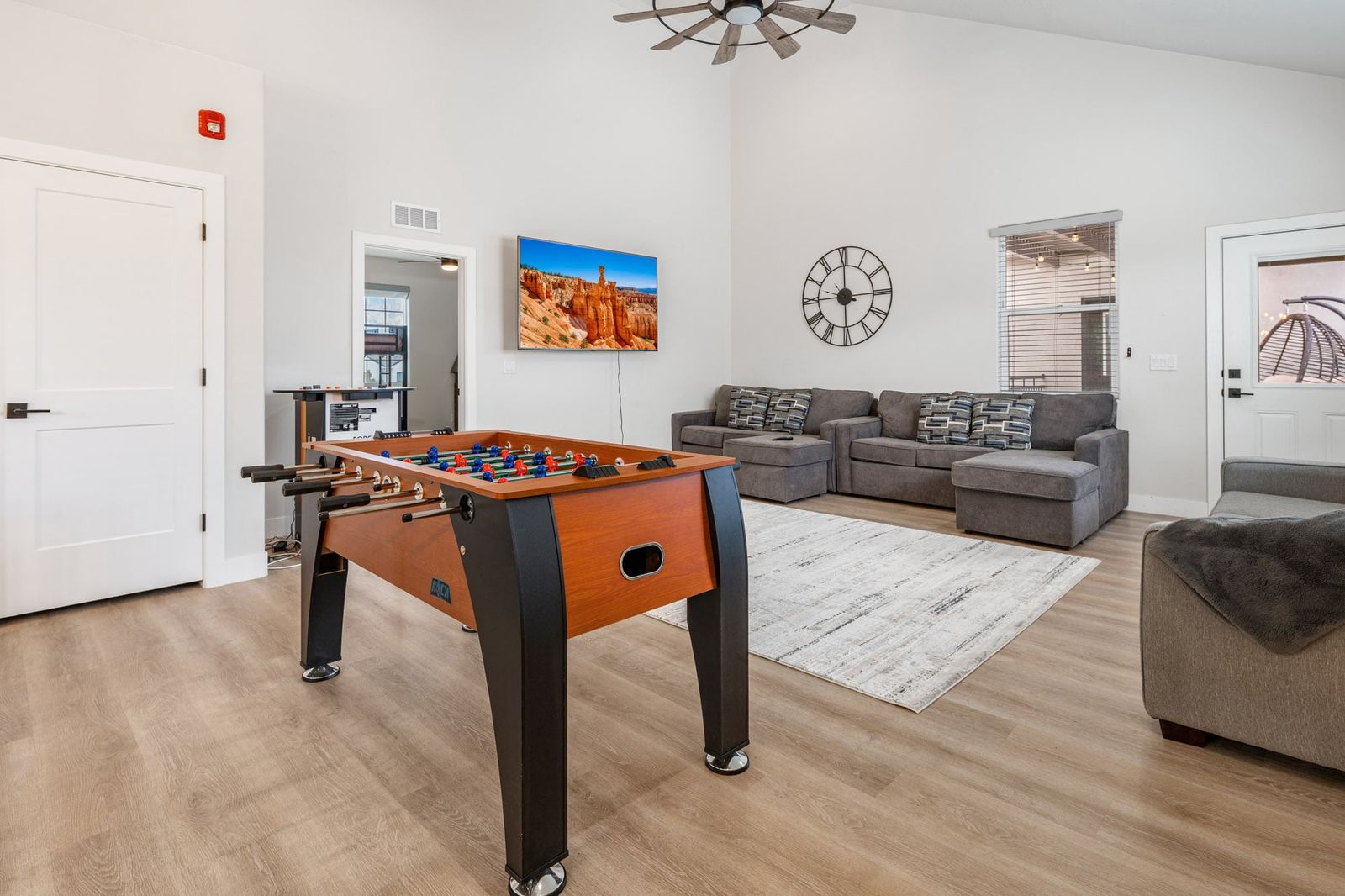 Step into the main house, where comfort and style collide. With three spacious bedrooms, each featuring its own TV and ensuite bathroom, everyone gets a private retreat. The cozy fireplace in the living room is perfect for gathering after a day of exploring, and the fully-equipped kitchen is ready for any culinary creations. But the fun doesn't stop indoors! Head outside to your private backyard paradise, complete with a sparkling pool, a lush putting green for the golf enthusiast, and plenty of outdoor seating for al fresco dining. Fire up the grill and savor a delicious meal under the stars. Upstairs, the loft is a game lovers dream, boasting a foosball and Pong arcade table, while the garage offers a Ping Pong table for friendly competition. Dive into adventure or simply soak up the relaxation your perfect vacation starts here!