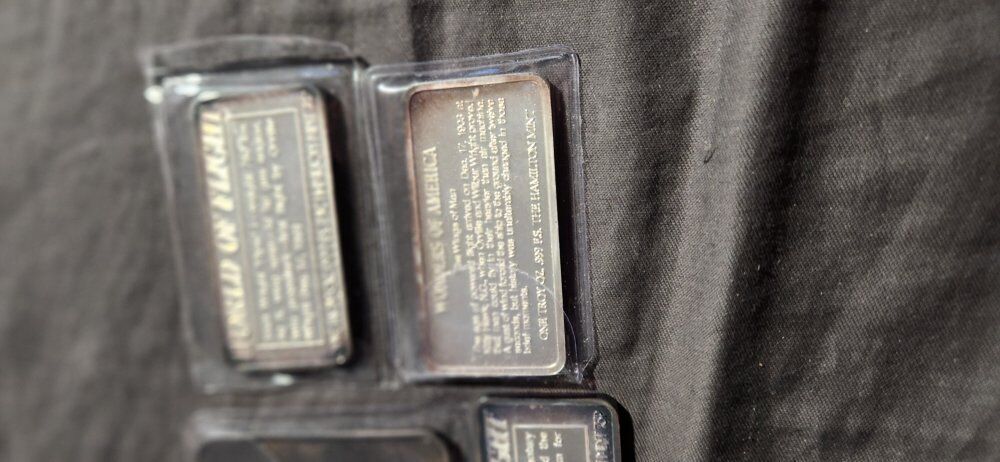 VenmoVintage 1 oz Silver art bars by American Argent Mint & unidentified mint! You probably already know silver is soaring with no end in sight. These 1oz bars are a vintage strike and classic design. I have a total of four of these. They all are of the same high quality but little bit different shade of toning. All are nice toners with pleasant orange brown. One has a completely black back! You are welcome to see what I have available and choose, but I won't hold a particular one for anyone unless you wan't to Venmo before you come. If you Venmo and change your mind after you see them (not after you buy), I can refund you. Silver keeps going up. $125 ea or $100 ea if you buy more than one. Let me know. KSL Messenger or text 8016414771 KSL messenger is best.