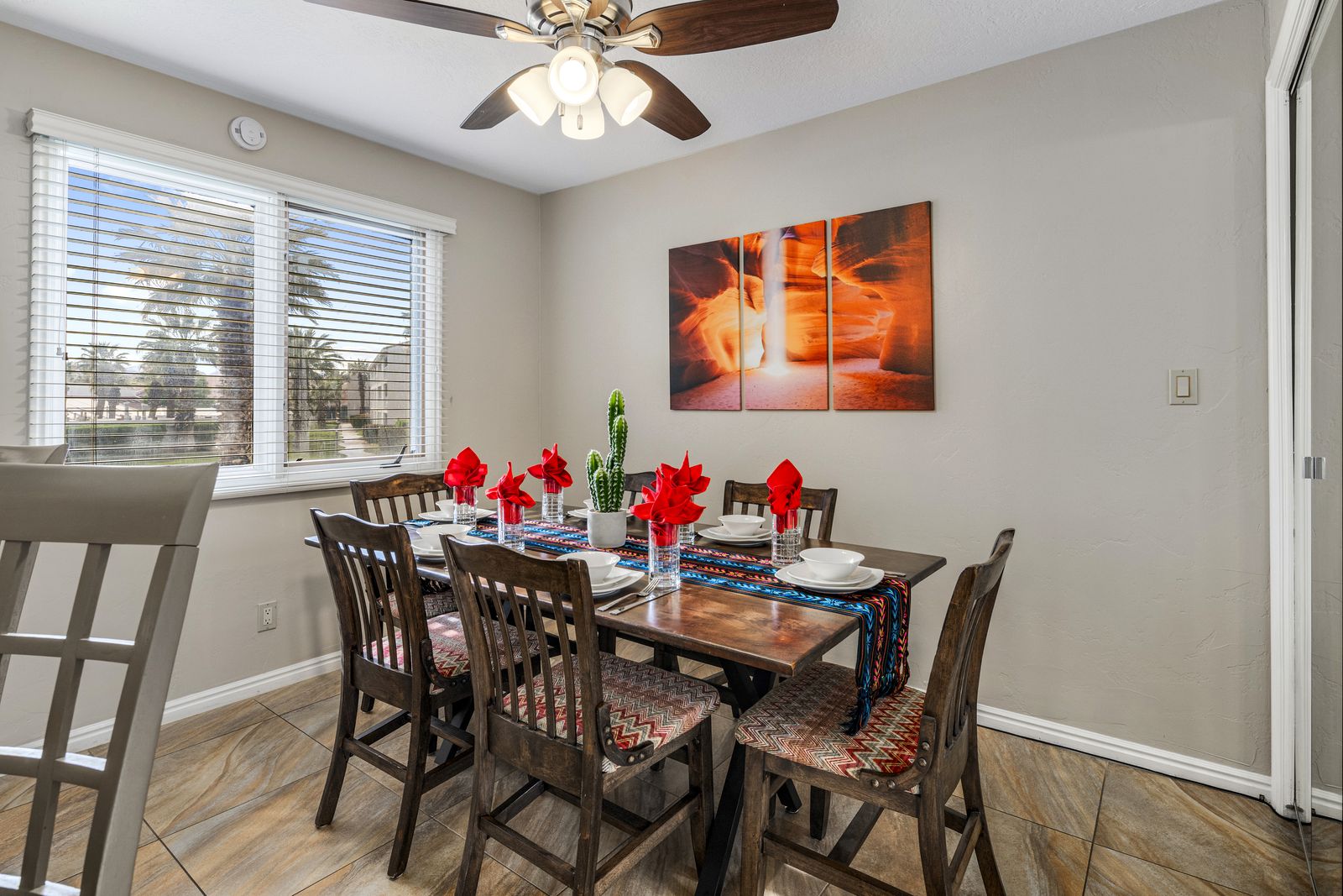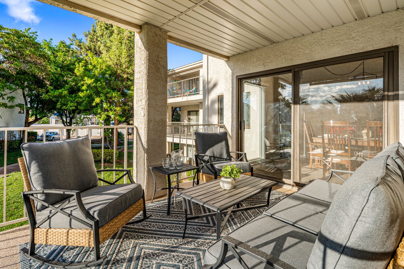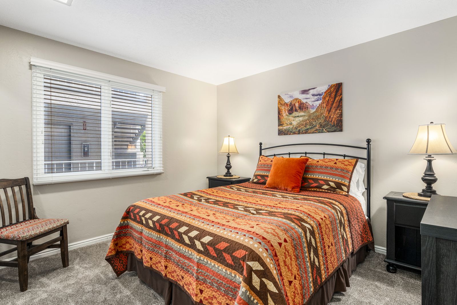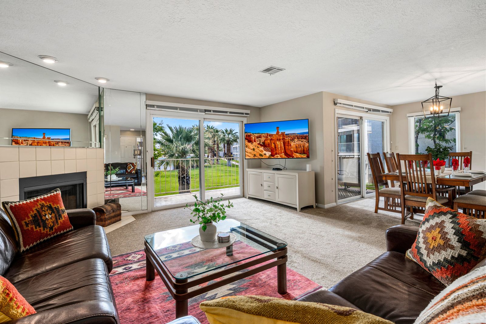 Inside, you'll find an open and inviting space with a comfortable pull-out couch, a fully equipped kitchen, and Smart TVs in every bedroom, giving everyone their own space to chill. Enjoy meals together at one of two dining tables, or step outside to the private balcony with outdoor seating and a grill, ideal for BBQs, stargazing, or your morning cup of coffee with desert views. Desert Dreamin' is part of a vibrant community featuring outdoor pools, a gym, and a clubhouse, so you can enjoy resort-style living during your stay. And with bike trails just around the corner and downtown St. George minutes away, you'll have easy access to shopping, dining, hiking, and all the red rock adventures Southern Utah is known for.