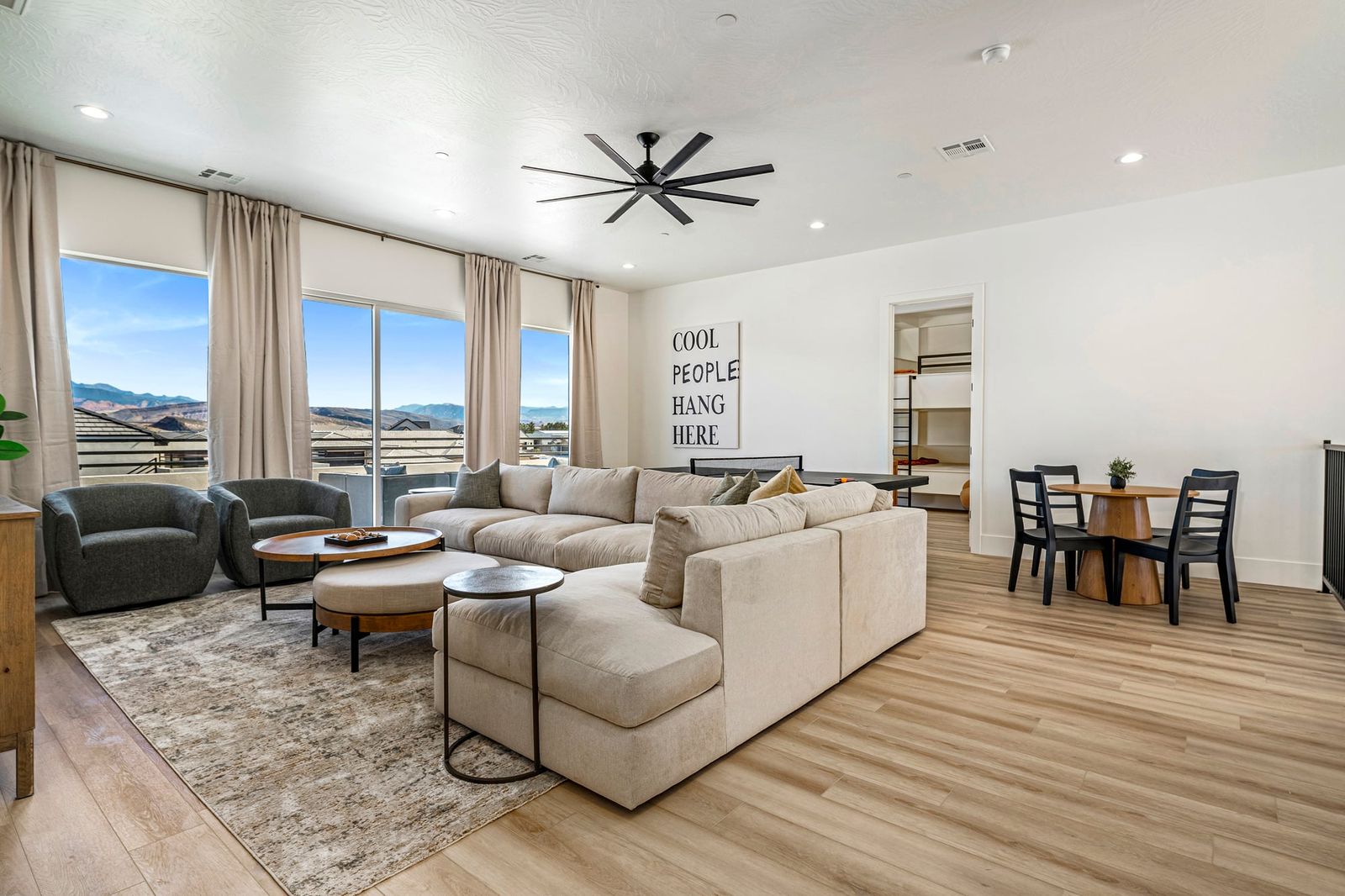 Inside the loft has a Nintendo Switch available for all ages of game enthusiasts. Each bedroom has its own bathroom for maximum comfort and privacy, and the open-concept living areas make it easy to gather, relax, and connect. Just minutes from Sand Hollow Reservoir and Jellystone Park, and close to epic hiking, biking, and ATV trails, this home is your dream basecamp for desert adventures, family reunions, corporate retreats, or unforgettable weekends with friends.