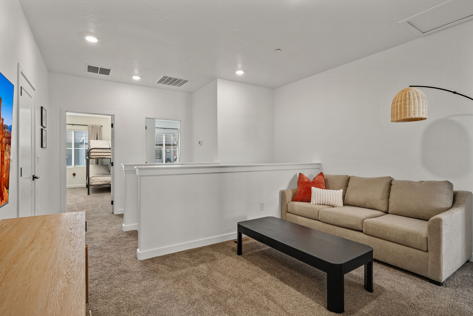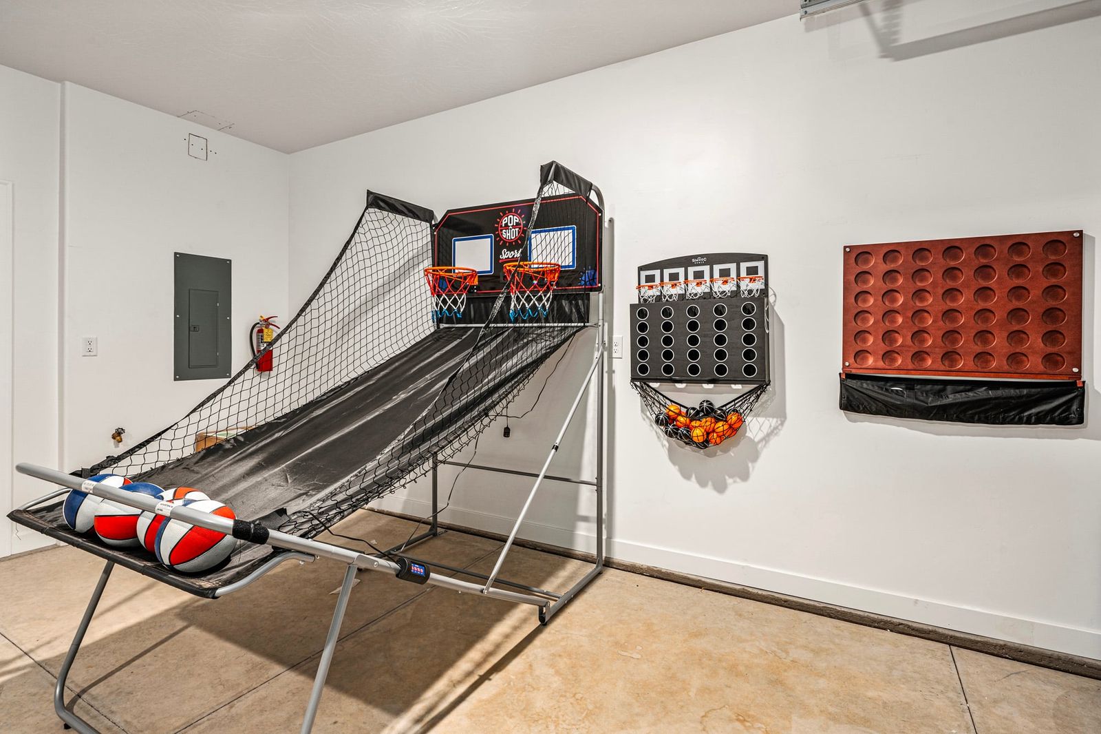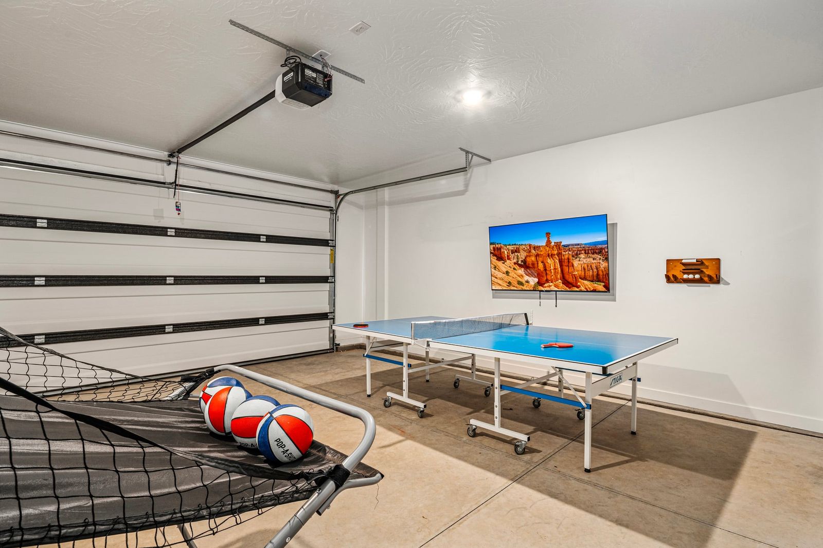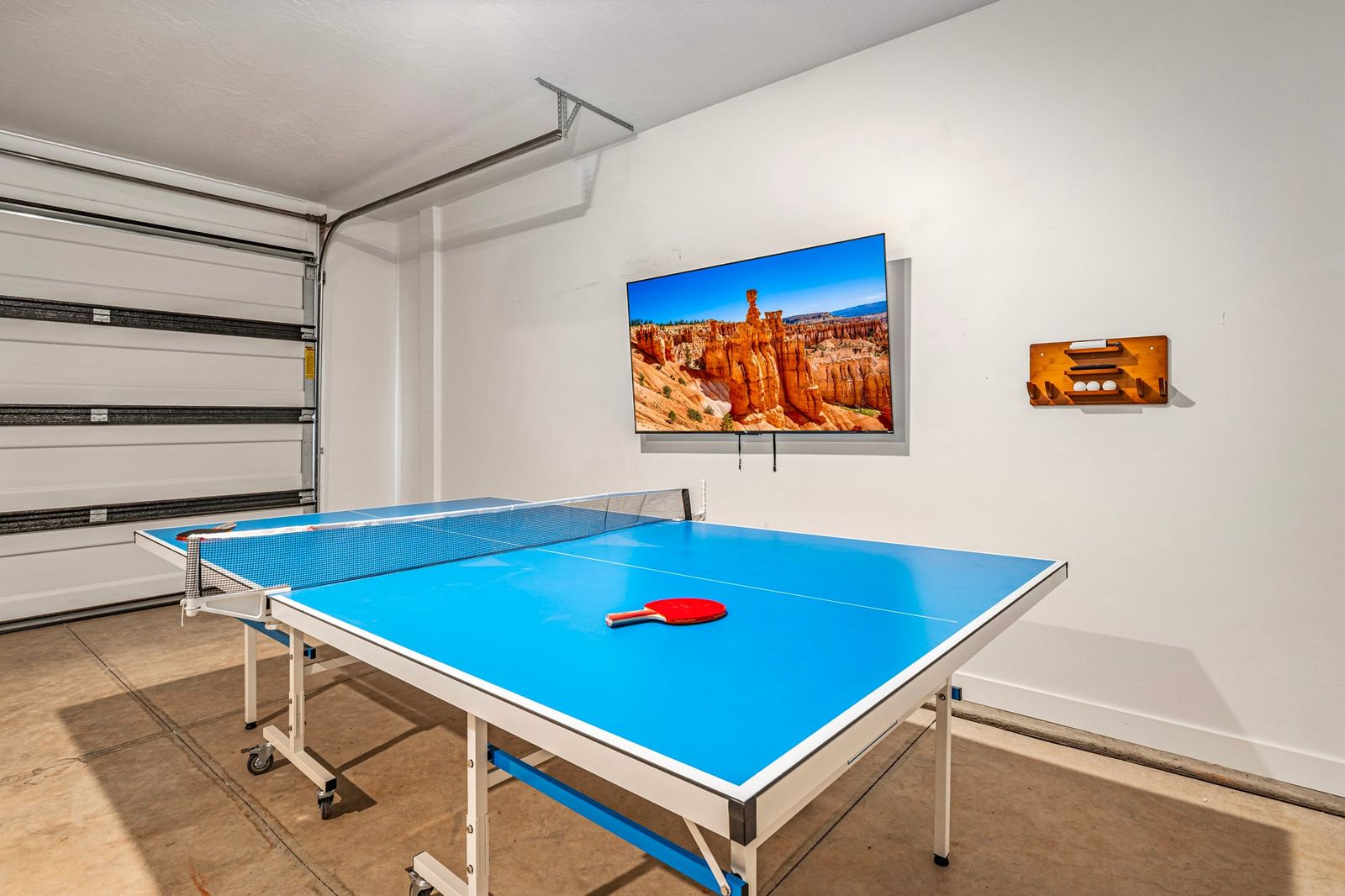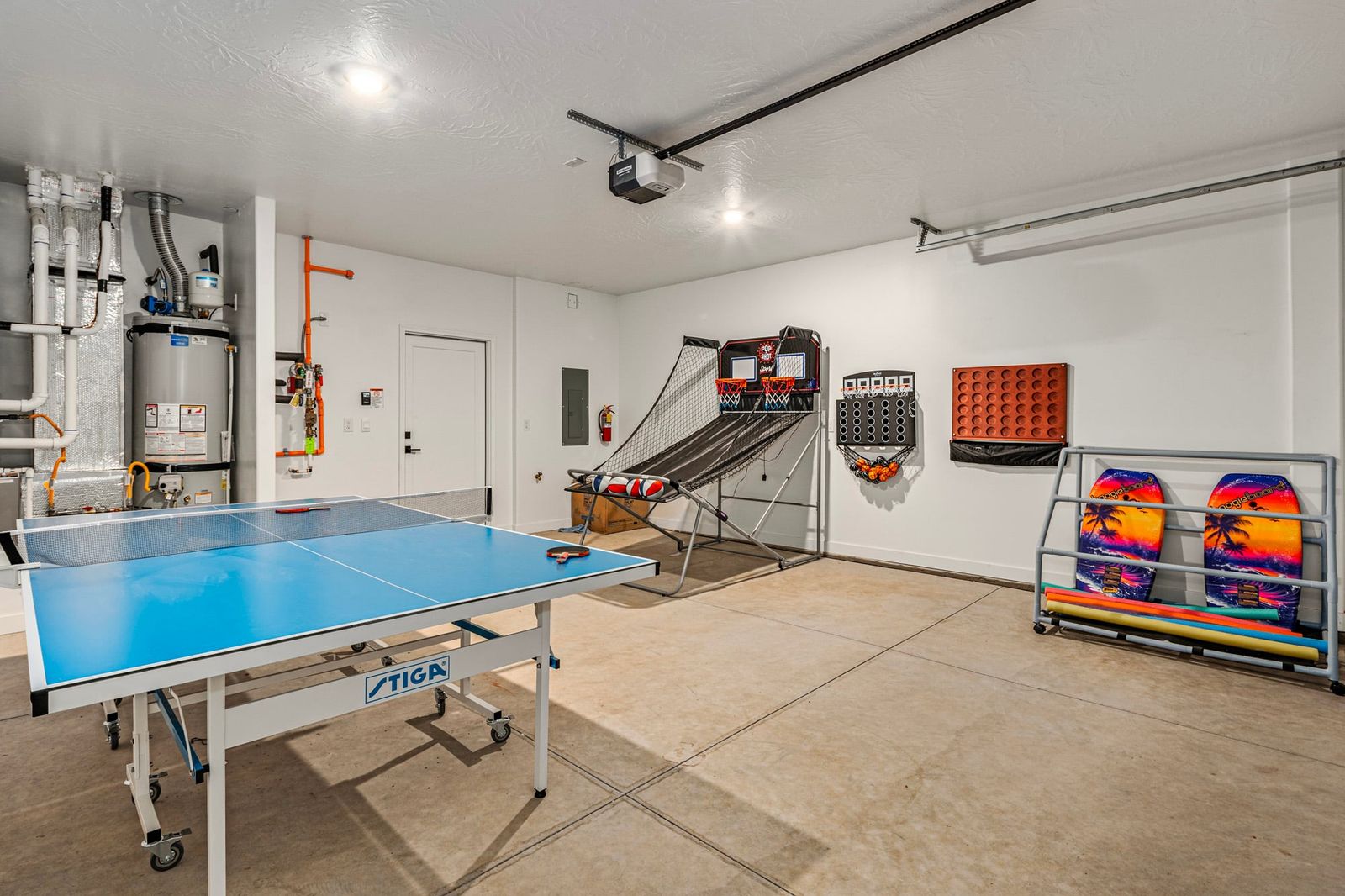 Back at home, enjoy a community packed with family-friendly amenities including pickleball courts, ping pong tables, a year-round heated pool and hot tub, horseshoes, basketball court, and wide-open grassy areas perfect for picnics and play. Inside, the home offers comfort and entertainment at every turn—Smart TVs in every bedroom, plus large screens in both the living room and loft, perfect for movie nights or game day. Each bedroom is thoughtfully designed for cozy, restful nights, making this the ideal retreat for families and friends. Step into the backyard oasis, where you’ll find a private hot tub, grill, mister system, and plenty of outdoor seating—a perfect spot to unwind after a day of adventure. And don’t miss the garage game room featuring a ping pong table, basketball arcade, hanging hoop game, Connect Four, TV, and even boogie boards for those lakeside excursions. Whether you're looking for an action-packed escape or a peaceful desert retreat, this Skyline stunner is your ultimate home away from home.