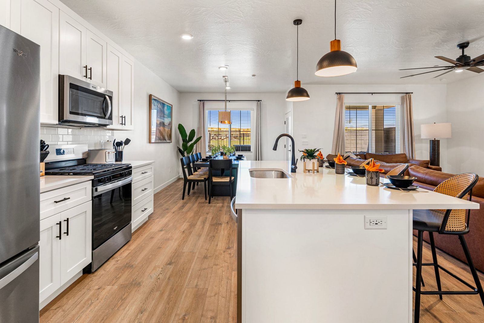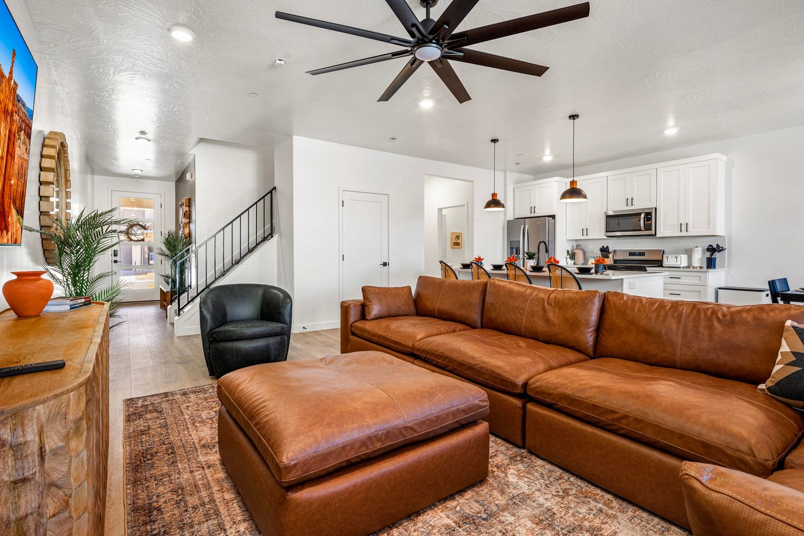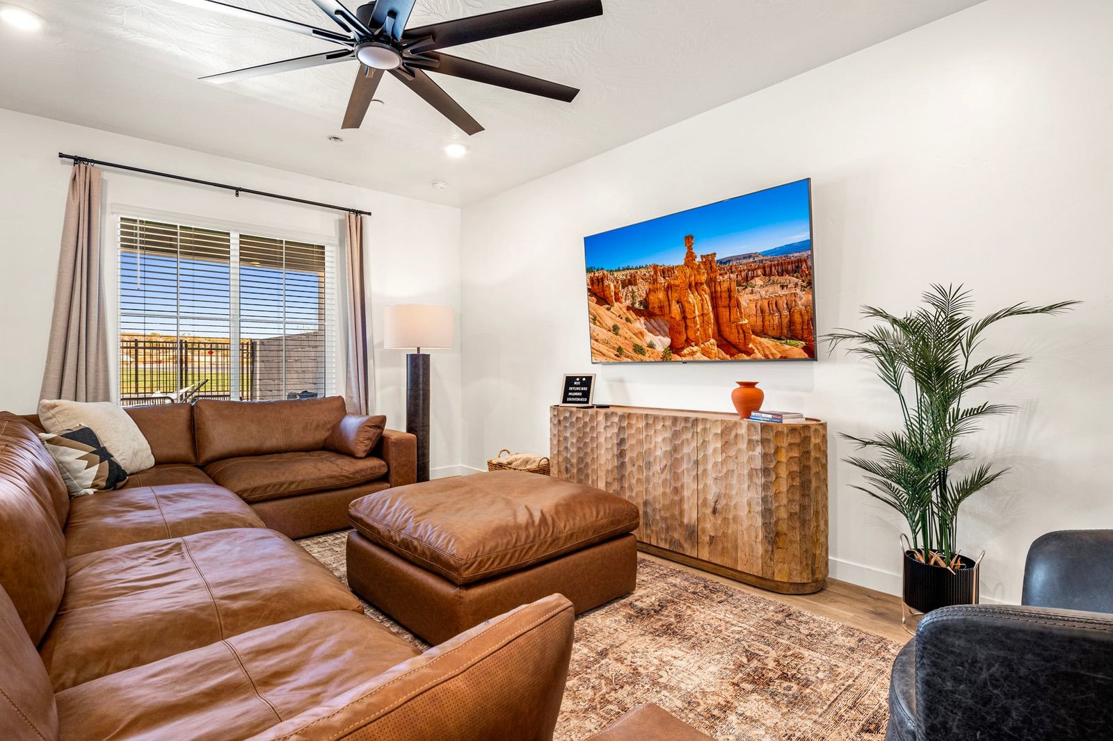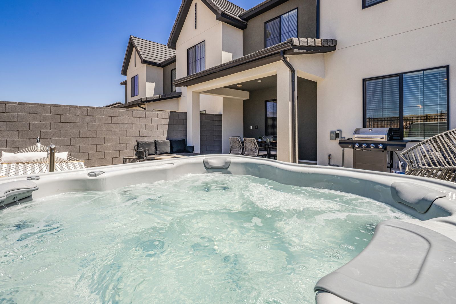 Step inside and enjoy the bright, open-concept living space, complete with a cozy living room and an upstairs loft area - plenty of room for everyone to relax and unwind after a day of exploring. Each bedroom is thoughtfully furnished for comfort. With smart TVs throughout, movie nights or binge-watching your favorite shows is always an option. Let the fun continue in the garage game zone, where you’ll find ping pong, cornhole, and a basketball arcade game ready for some friendly competition. On the other side of the garage, there’s an EV charger available for guest use, perfect for road trippers! Outside, enjoy the private, fenced-in backyard with seating for relaxing under the stars or planning the next day's adventures. Feeling a little adventurous? Grab the tandem bike and explore the neighborhood or nearby trails together! The community offers resort-style amenities the whole family will love: Pools, Pickleball Courts, Basketball Court, Playground, Pavilion, Two large open lawn areas - perfect for games or picnics! Located just off the highway, you’re only a short drive from Sand Hollow Reservoir, ATV trails, world-class biking and hiking paths, and other iconic Utah destinations. Zion National Park is just a 40-minute drive away, making it easy to plan an unforgettable day trip. This home is the perfect mix of modern comfort and outdoor adventure. A great place to make memories, laugh a little louder, and enjoy everything Southern Utah has to offer.