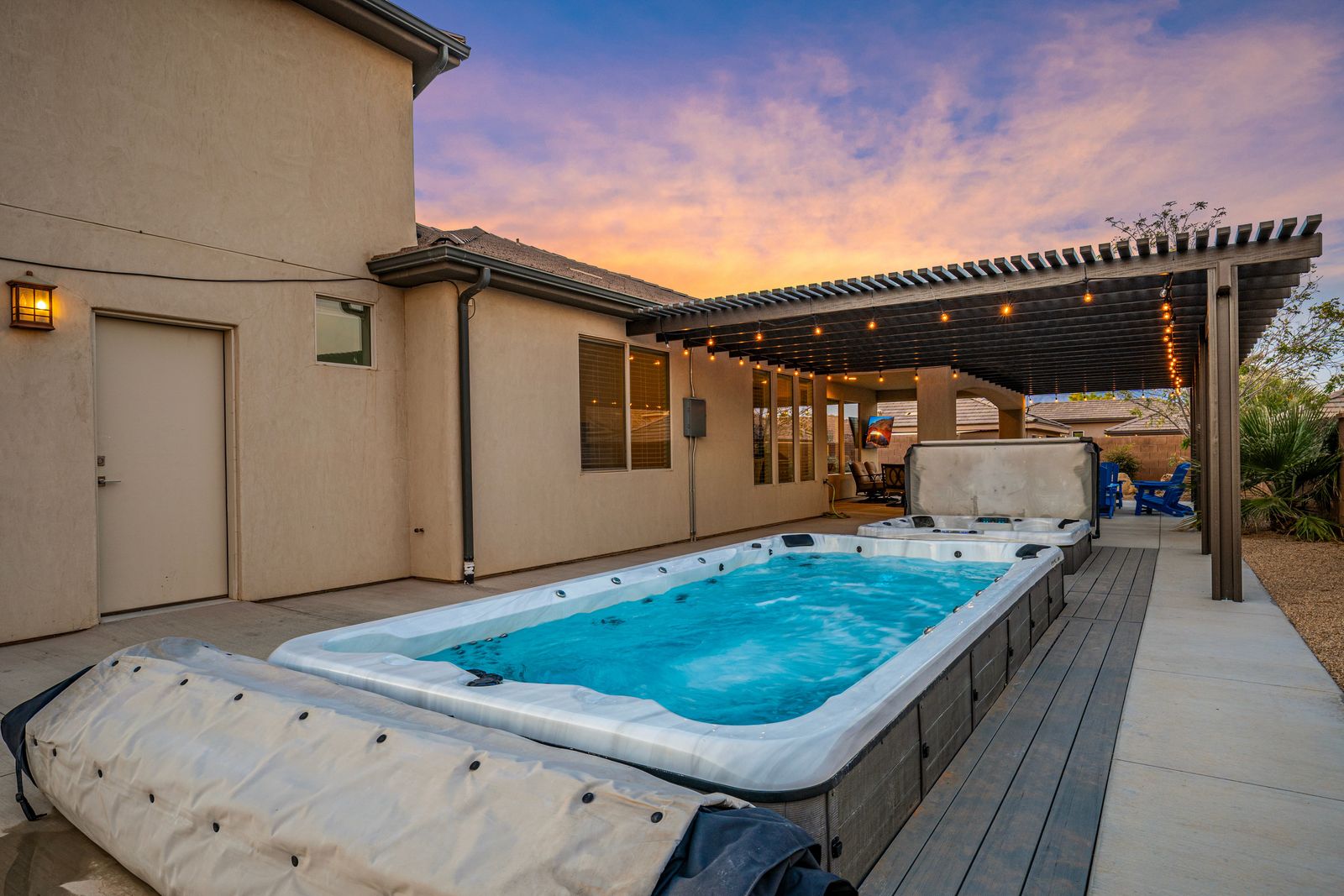 Experience the ultimate getaway at The Retreat to Dixie Sand Delight, where relaxation and leisure await. Unwind in our private hot tub, embracing the soothing warmth and tranquility it offers. Indulge in the refreshing waters of our swim spa, perfect for both fitness and relaxation. Plus, take advantage of the nearby lake, where you can immerse yourself in nature's beauty and enjoy various water activities Inside, you'll find a smart TV in both the king and queen bedrooms. Immerse yourself in your favorite shows, movies, or online streaming services from the cozy confines of your private retreat Enjoy quality time with your family and guests while savoring delicious, barbecued delights in the comfort of our outdoor seating area. Designed to accommodate your entire group, it provides ample space for everyone to gather, share laughter, and create lasting memories. Whether you're hosting a casual cookout or a lively gathering, our outdoor seating area ensures that everyone can relax, socialize, and indulge in mouthwatering barbecue flavors. Discover a haven of comfort, serenity, and adventure at The Retreat to Dixie Sand Delight, promising an unforgettable escape.