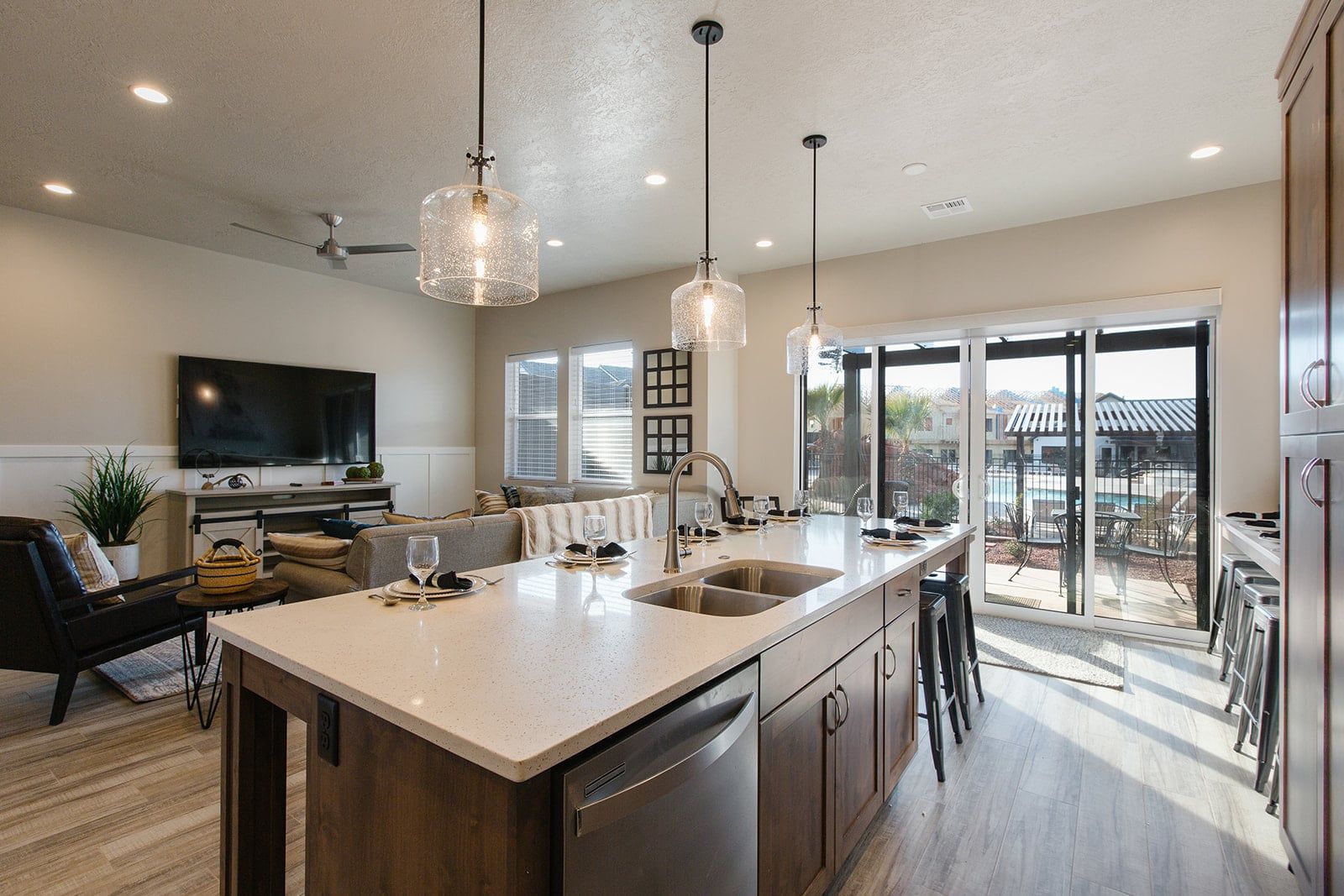 This beautiful 3 bedroom / 3.5 bath townhome can comfortably accommodate 12 guests. Morning’s will quickly become your favorite time of day at Endless Summer. Sipping on a hot cup of coffee, watching the sunrise on the private balcony; there is nothing quite like it! Spend your days exploring the beautiful desert mountains nearby or take advantage of the resort-style pool and lazy river that Ocotillo Springs offers. Take the bikes provided in the garage out along one of the many bike trails and explore Santa Clara! Back at home, enjoy good company and good barbeque, on the back patio under the setting desert sun. Host a game night on the Xbox 1 or grab a bowl of popcorn and settle in for a movie night. No matter what you are coming to Southern Utah for, it is always summer, at Endless Summer!