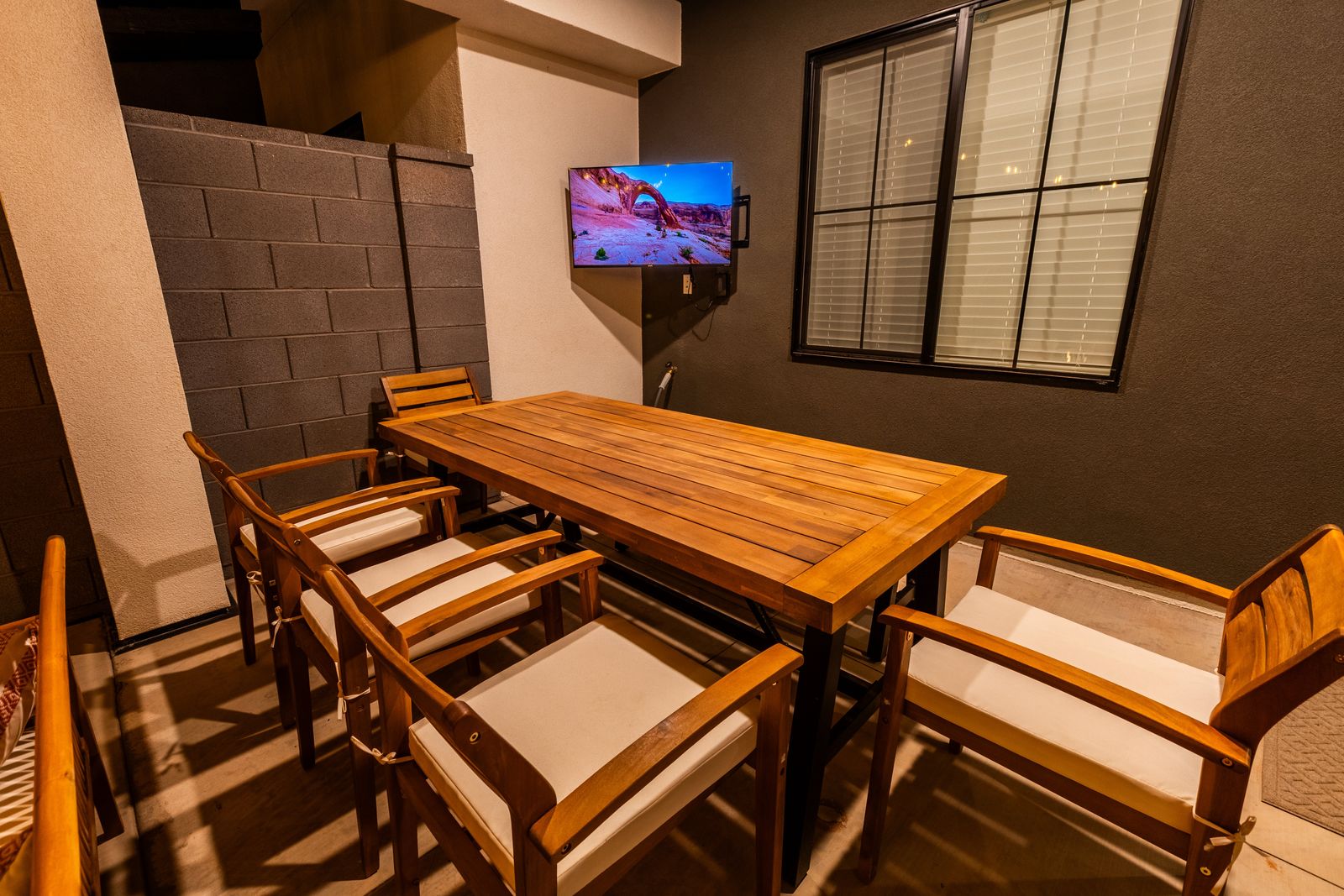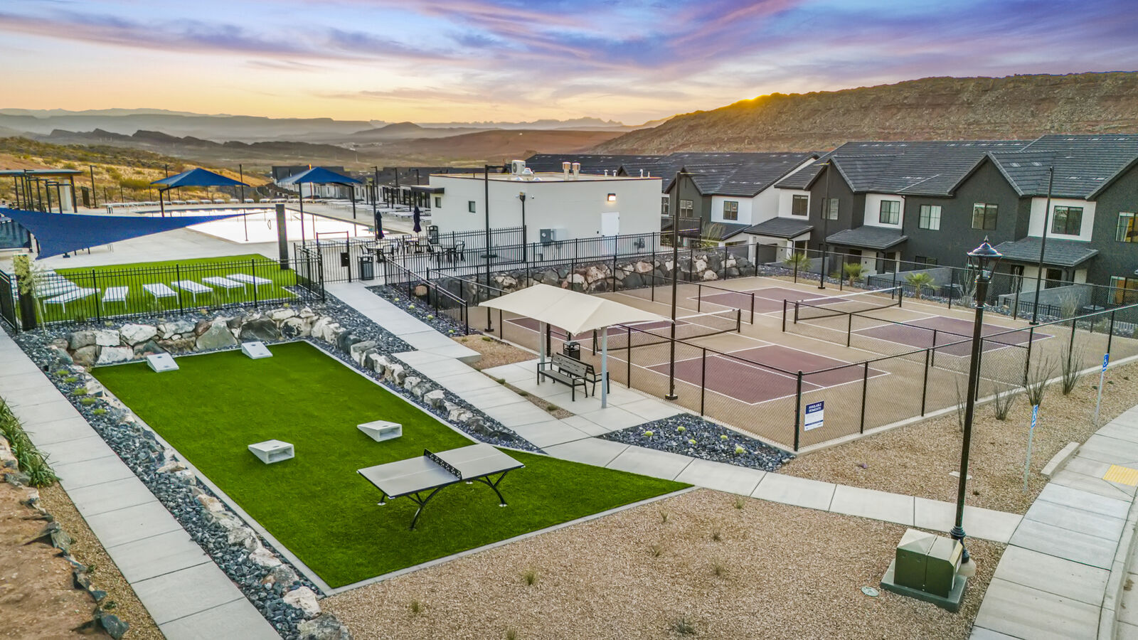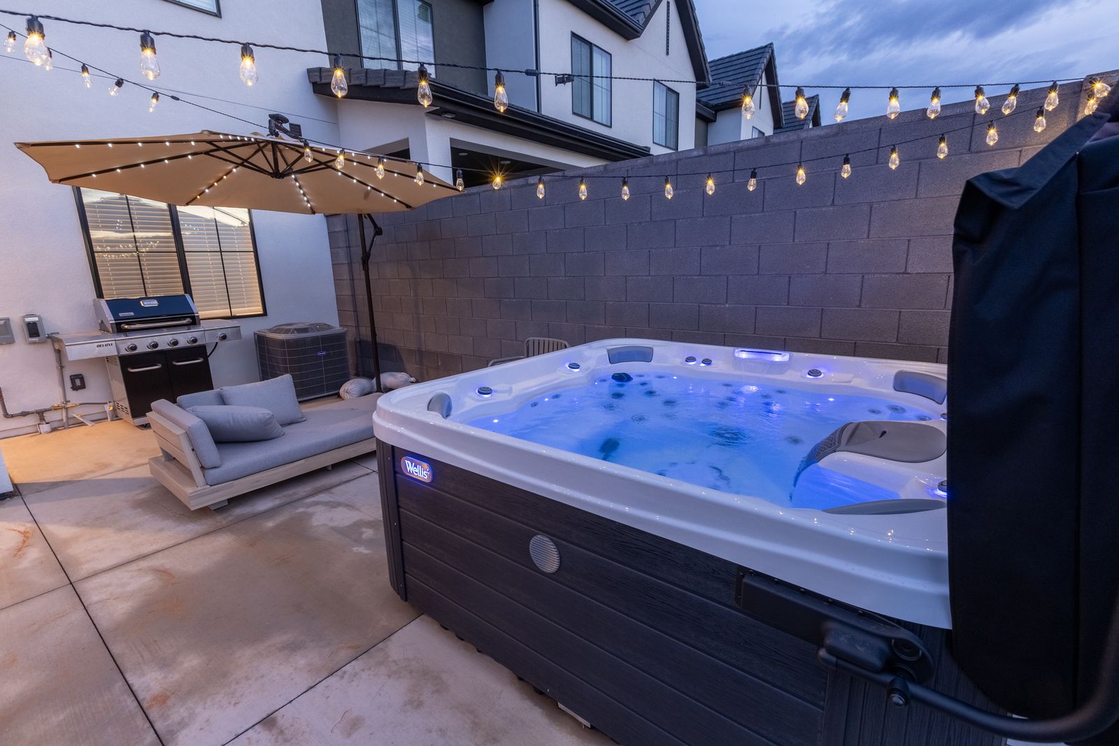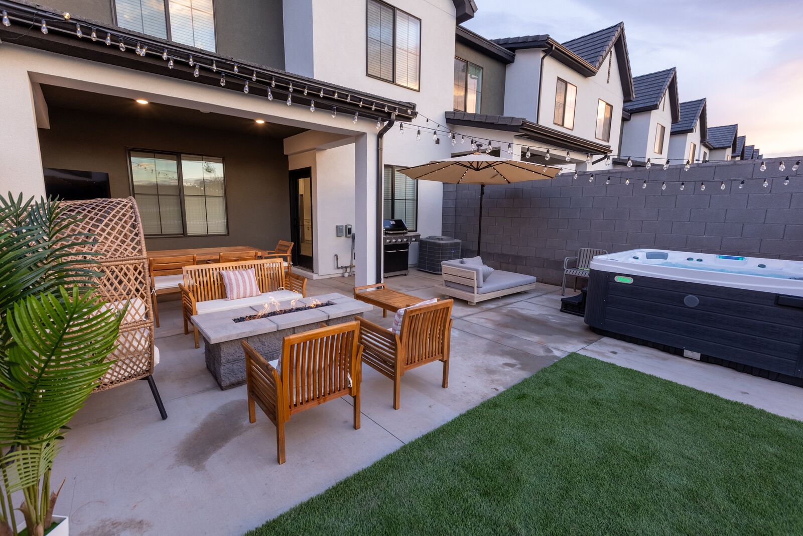 Inside, you’ll find all the bedrooms have their own private ensuite bathrooms. You have three elegant king suites, plus a lively bunk room that’s perfect for kids or groups. The bunk room features two sets of bunk beds (a queen/twin XL and a twin/twin) and a plush pull-out sofa sleeper for extra guests. The fully equipped, brand-new kitchen has everything you need to cook family meals or grab quick snacks between adventures. Every bedroom, the loft, and the living room feature smart TVs, so everyone can stream their favorite shows and movies with ease. Head upstairs to the loft for a friendly gaming competition on the Nintendo Wii, or challenge your friends to a round of poker, hoops, foosball, pool, air hockey, or ping pong in the game garage. There is also a variety of fun outdoor games that can be played on the grass directly out your back door! For more low-key entertainment, the bunk room is stocked with classic board games that are perfect for rainy days or family nights in. Step outside to your private, fenced backyard oasis — complete with cozy seating, beautiful lighting, an outdoor TV, a grill for BBQ nights, a firepit for stargazing, and your very own hot tub. Whether you’re soaking under the stars or relaxing after a day on the trails, this is where vacation mode truly begins. Love the outdoors? You’re just minutes from Sand Hollow’s sparkling waters, ATV trails, and scenic desert landscapes. Plus, the community offers fantastic amenities for every age, ensuring endless opportunities for play and relaxation. Perfect for families, groups, or anyone looking to combine adventure with comfort, this home isn’t just a place to stay — it’s where your best vacation memories are made.