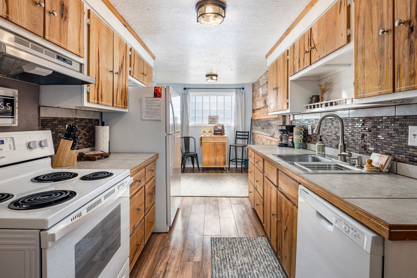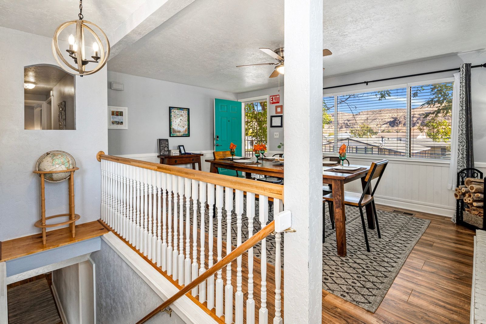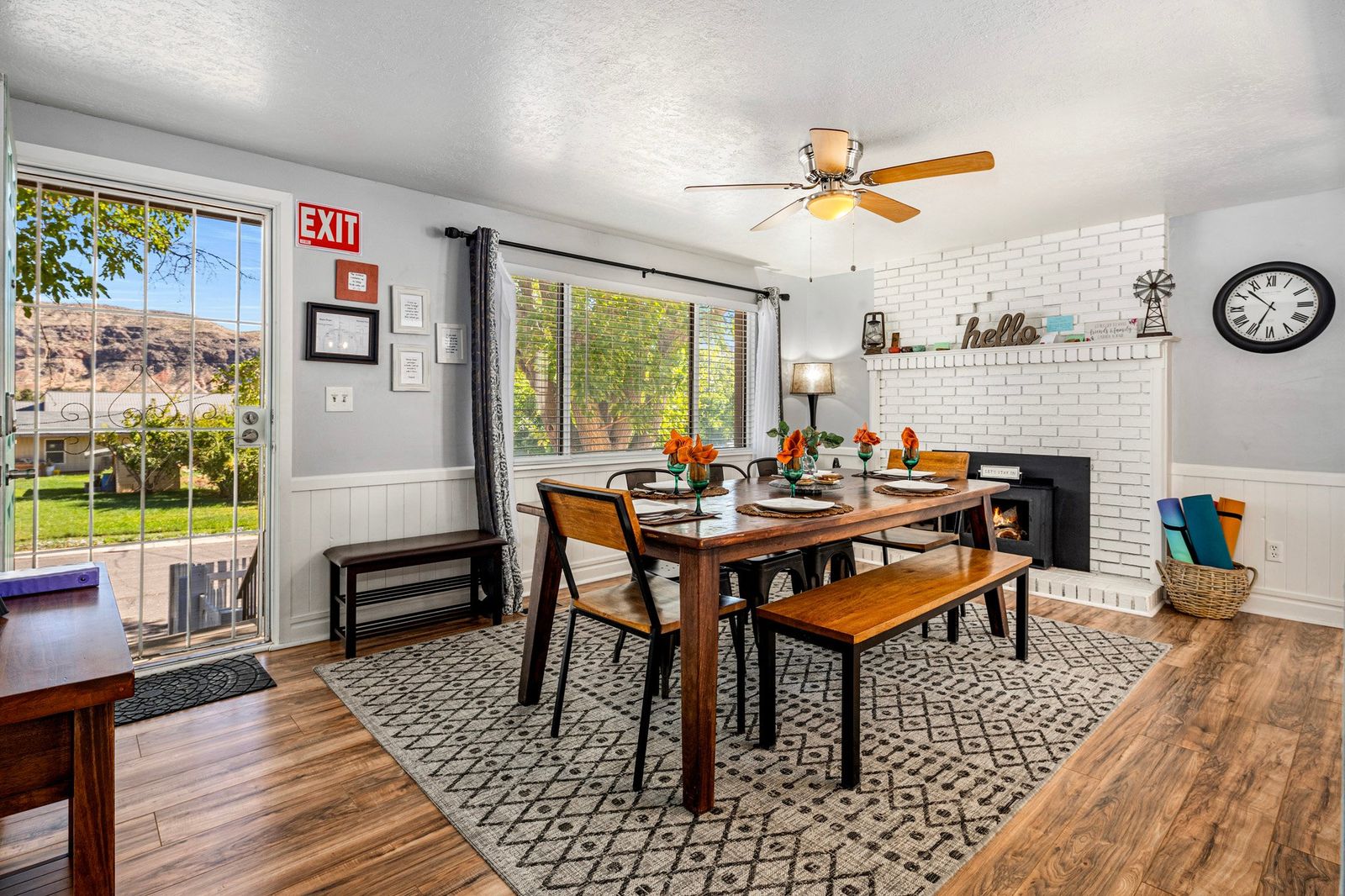 Fast & Reliable WiFi (300 Mbps): perfect for remote work, streaming, or keeping in touch on the go. Fully stocked kitchen with all the essentials; pots, pans, dinnerware, glassware, and handy extras like a French press, cold brew maker, percolator, and drip coffee pot. Large dining table seats 8+ comfortably for family meals or late-night board games. Cozy family room with games, books, and a big comfy couch for movie nights. Wood-burning fireplace to keep things warm and inviting on cool desert evenings. Washer & dryer (large, high-efficiency) for those longer stays. Driveway parking for at least two vehicles. Gorgeous views of the La Verkin cliffs and stunning desert landscape.