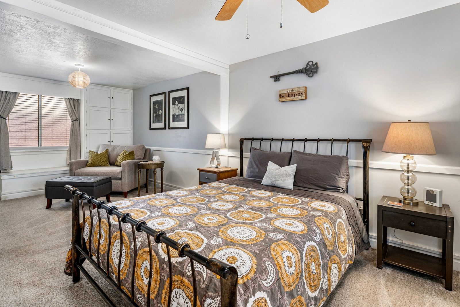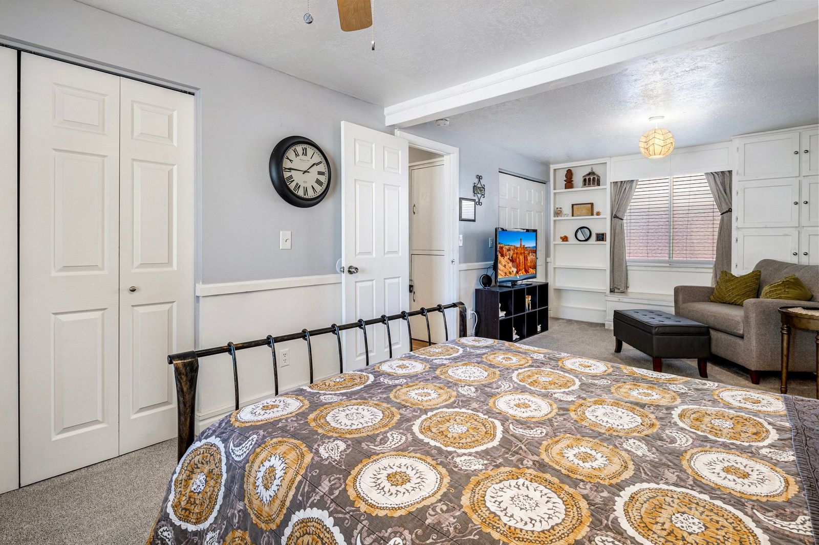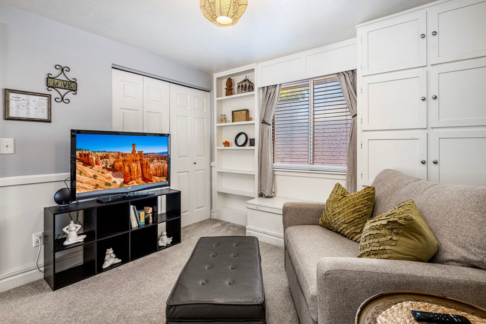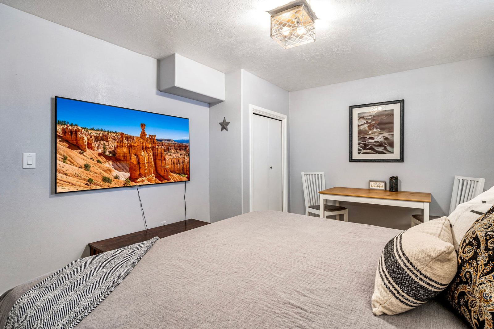 Master Bedroom: Queen Tempur-Pedic bed + small twin-size futon, TV, Shared bathroom