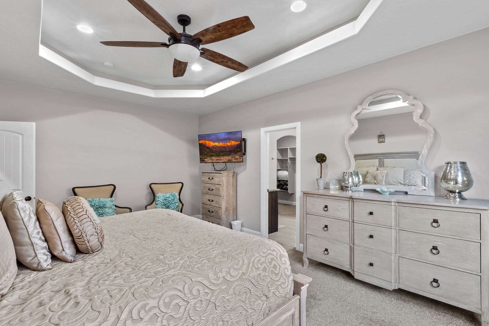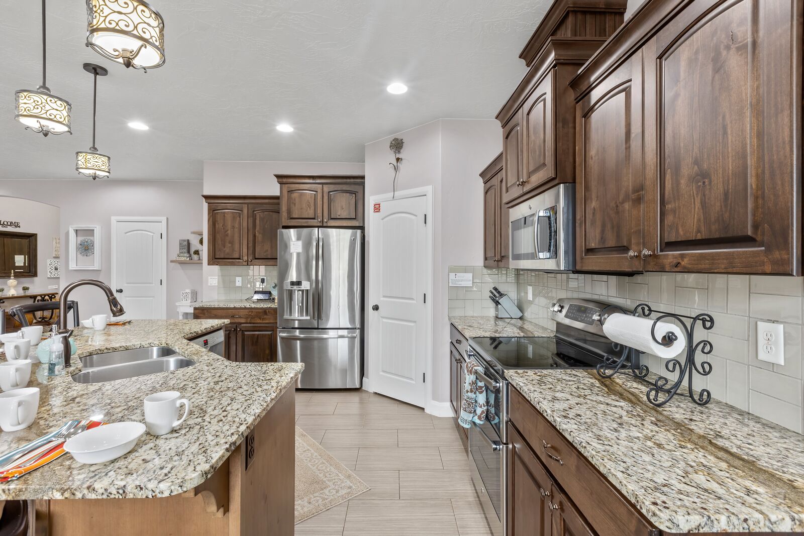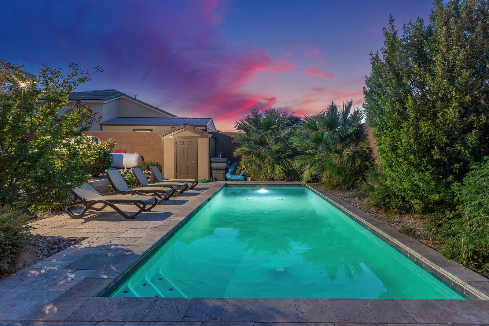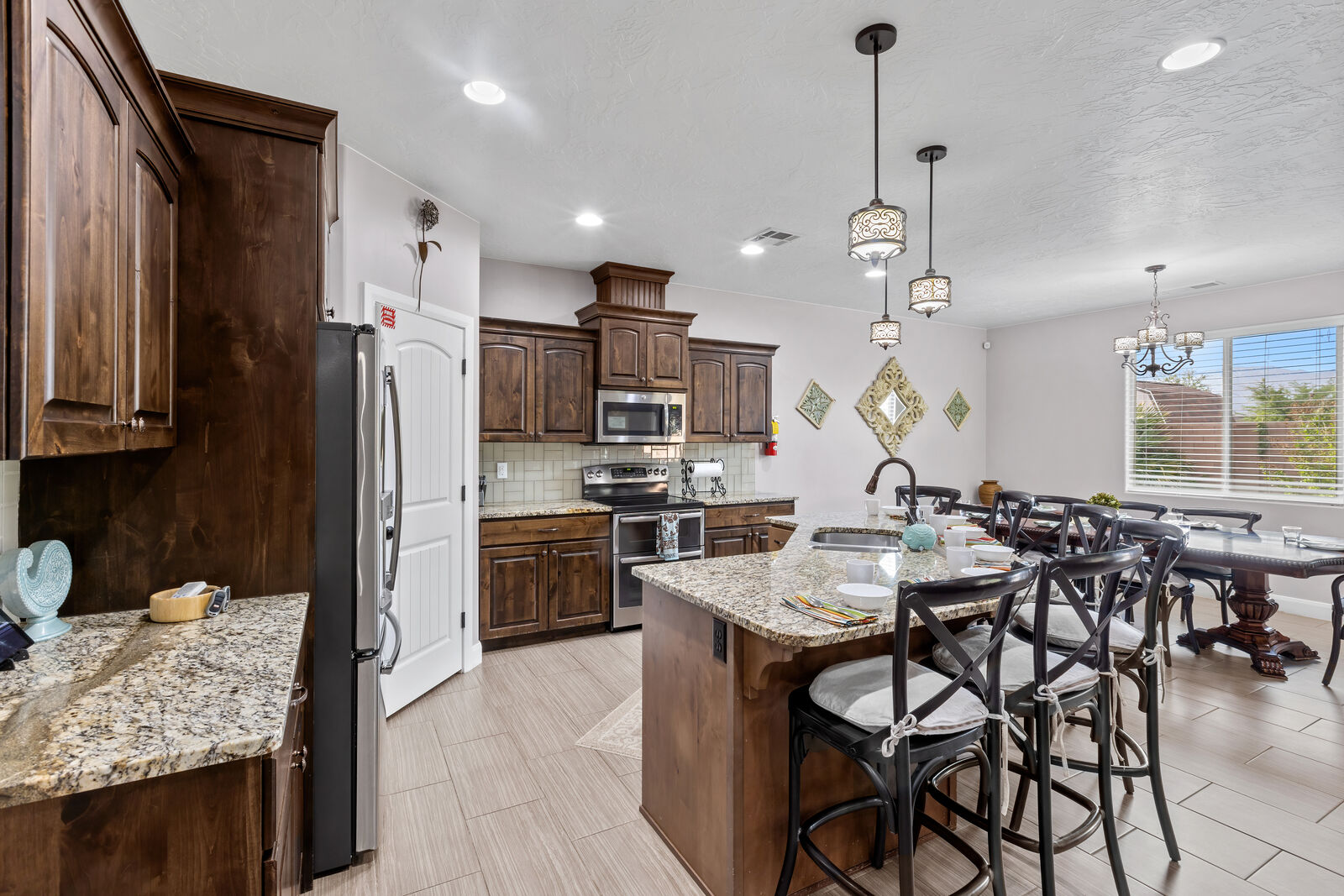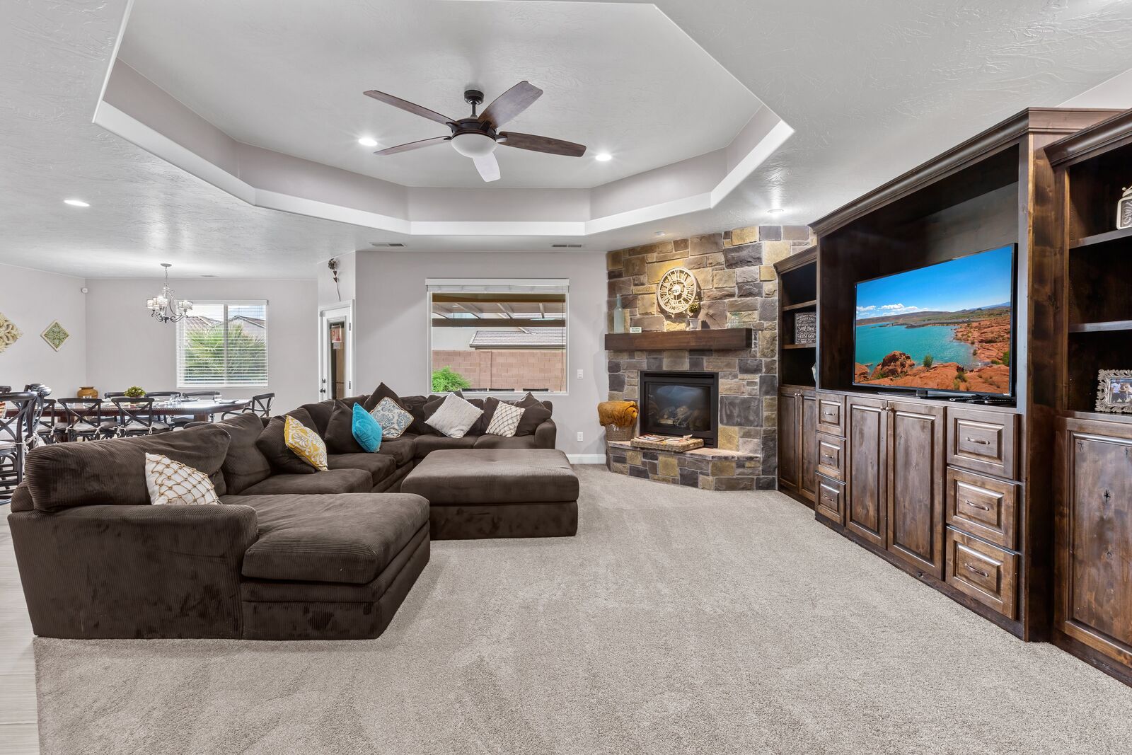 Splash is a beautiful 4 bedroom / 2.5 bath home that comfortably accommodates 10 guests. Wake up with a hot cup of coffee on the patio watching the sunrise over your private pool. Head out to Sand Hollow Reservoir for a day full of adventure; cliff jumping, paddle boarding, exploring the sand dunes, or renting a boat for the day are just a few examples of all the fun to be had! For a more relaxing day, grab a pool floatie and head out back to your private pool! The kids will love being able to splash around in the splash pad instead of fully submerged. With many lounge chairs, catching rays is enjoyable in or out of the water! The fully equipped kitchen, barbeque, indoor and outdoor seating make dinner parties for friends and family a breeze. Grab a cold drink and relax your tired muscles in your private hot tub as the sunset paints the sky an array of colors. Roast a few marshmallows around the fire out back under the starry night sky for a sweet treat! Wind down with a bowl of popcorn and cuddles on the couch, with a Smart TV and Dish, picking a movie everyone will love is simple. Whether you are adventuring at the Reservoir or relaxing pool side; timeless memories will be made at Splash!