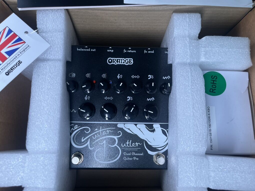VenmoThe Orange Guitar Butler is your all-in-one tone concierge. Whether you're building a compact pedalboard setup, need a dependable touring preamp, or just want to plug straight into a PA, the Guitar Butler takes care of it all. It features a sparkly, edge-of-breakup Clean channel and a roaring Dirty channel based on iconic high-gain amp circuits. There's a built-in compressor to keep things tight, and a CabSim-equipped balanced output for effortless direct recording or live use. If you want your tone handled with care and authority, your butler is on hand. Comes with box and power supply. Next to new condition - price is firm