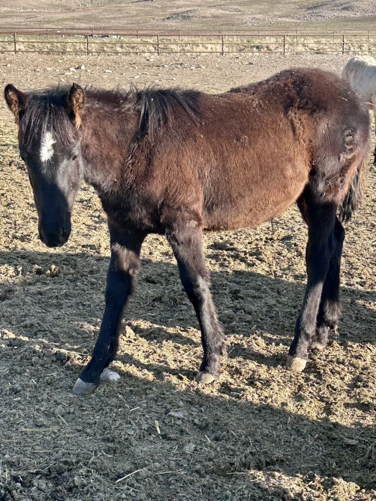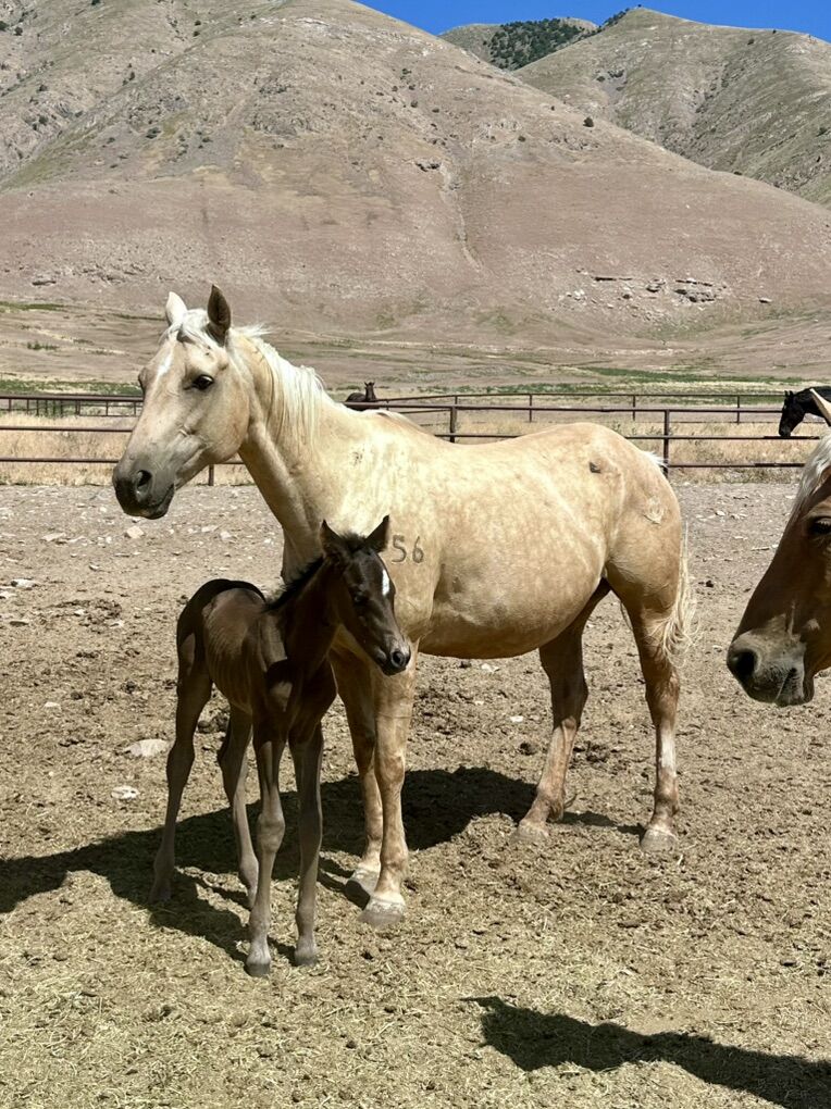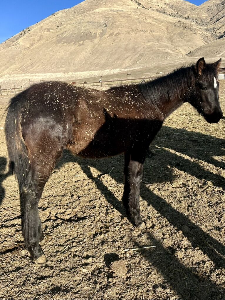 ZelleThis fancy stud colt is out of a 1/2 Percheron stud and a driftwood bred QH mare. He is a smokey black! He is a bit of a later foal born in June 2025. He’s long legged and built just right, we have used this cross for anything from ranch work, rodeo work, trail riding, anything you can think of! The draft adds a bit of bone and foot with a quarter horse size frame he will be very athletic! He’s very curious, smart, and wanting to be friendly. Please shoot me a call or text to come see this guy! Sire and dam on site.