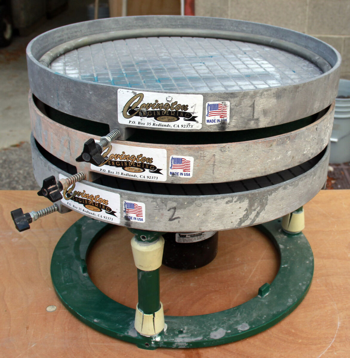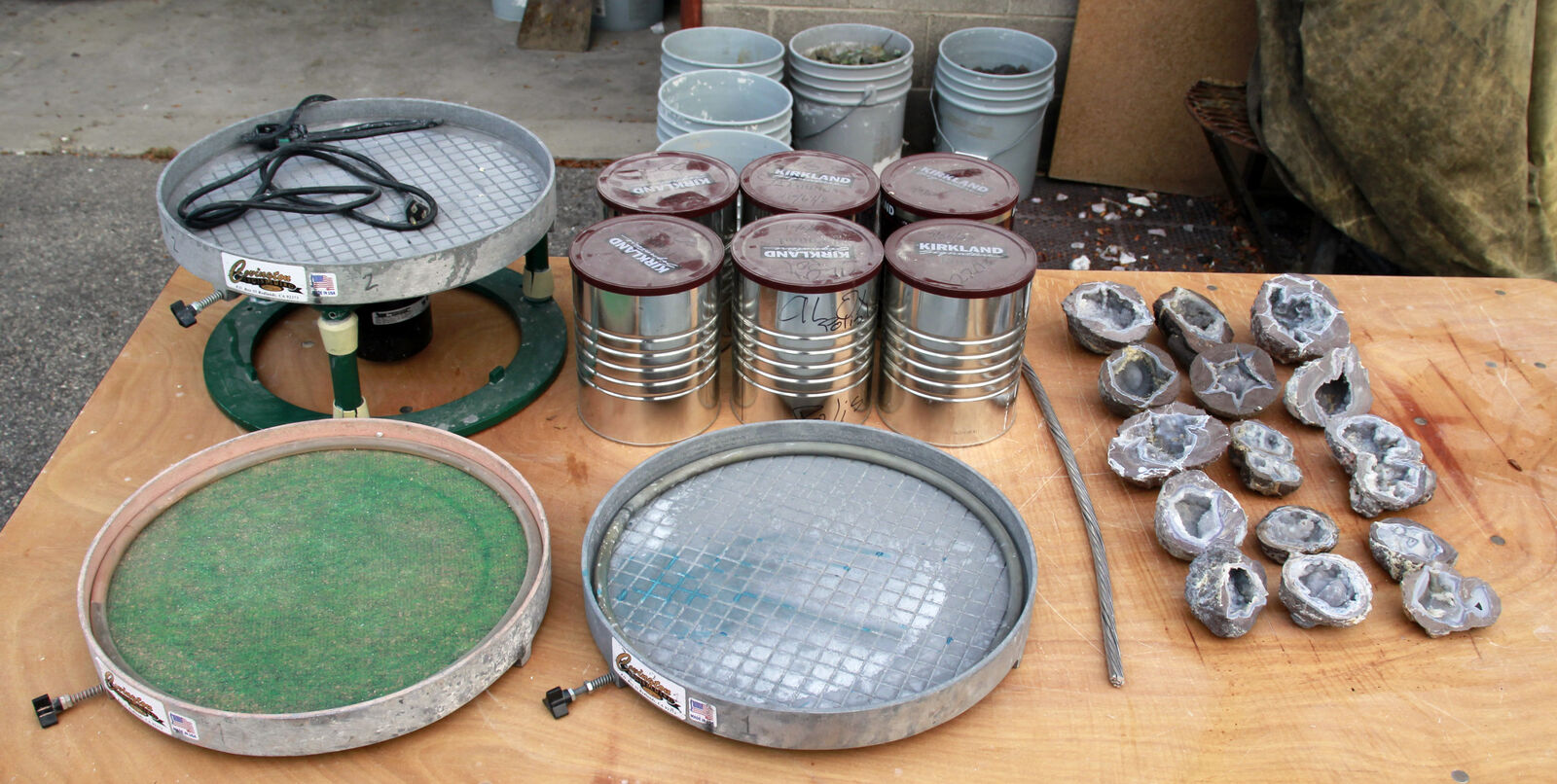PayPalUsed, clean, fully functional Covington 16" vibe lap with 3 pans, 1 polishing pad, 6 cans of grit in varying amounts and 15 unpolished Dugway geodes.