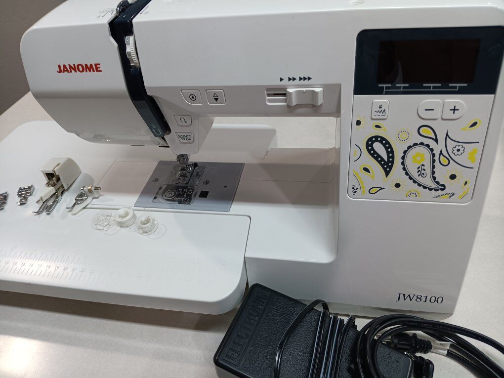 Home model Janome sewing machine, in excellent condition. Has computerized stitch adjustments and over 75 different stitches. Has automatic sew function, so you can sew with the touch of a button (see video). Includes standard arm, extended arm, pedal, power cord, 6 different feet, and 3 bobbins. No known issues.
