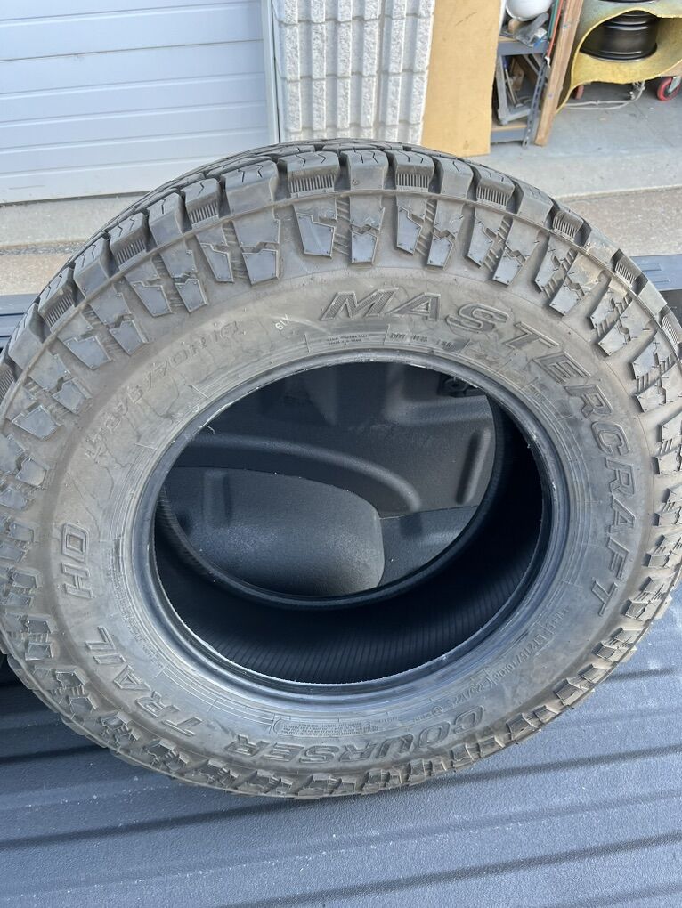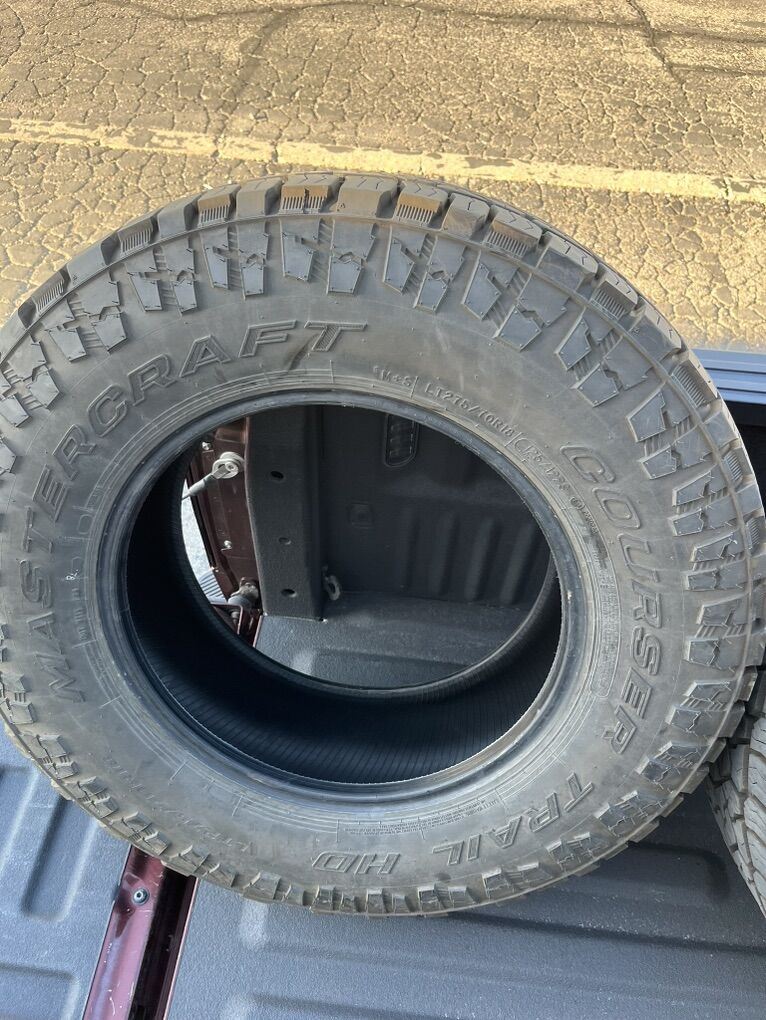 ApplePayBasically brand new set of 4 Mastercraft ATs (same company as cooper) with 3k miles on them. 10 ply. Came off my F150. $317 a tire new. Getting the same tire but cheaper. Firm