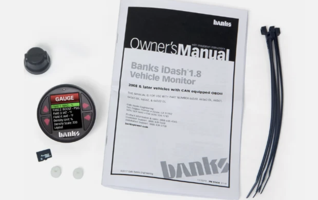 Key FeaturesCustomizable gauge display Read Boost Pressure, EGT and so much more Avoid costly repairs by monitoring important sensors Upgrade your Derringer Tuner with 6 levels of power Controls Derringer Tuner (not incl.) Display 2-8 values Read up to 80 OBDII Mode 01 values Over 300 parameters available View Data your dash does not display Displays accurate values your OEM dash gauges filter Includes patented OBDII Density (exclusive to Banks) Adds Data-Logging functionality (incl 4gb micro-SD) Log up 100 parameters at a time Log up to 20 min/max values Built-in Shift & RPM Light Connect multiple iDash gauges Auto-Dimming Feature Fits standard 52mm (2-1/16 inch) gauge mounts Features vary by application