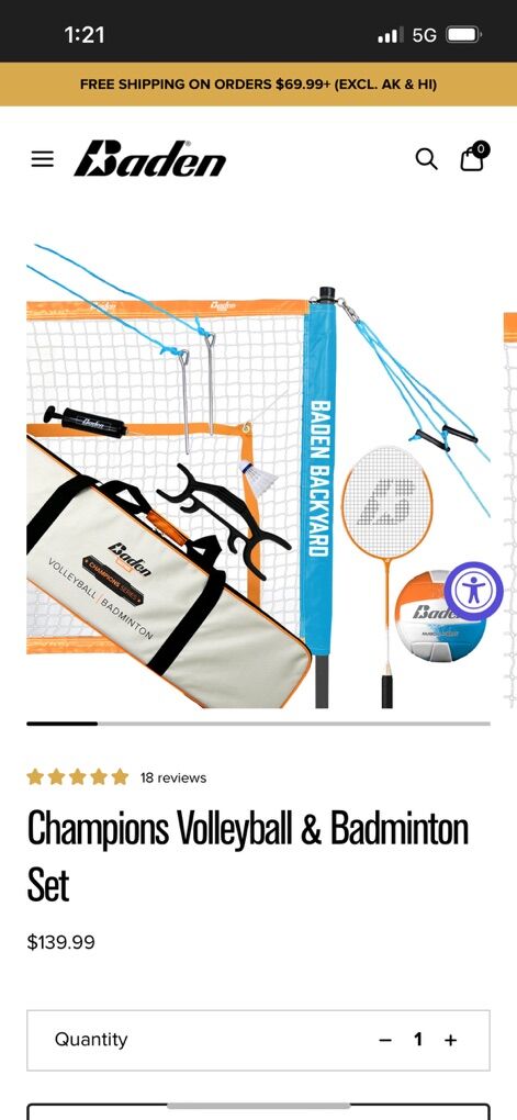 VenmoI’m selling a complete Baden backyard sports combo set that includes equipment for both volleyball and badminton. Everything is in excellent condition still wrapped in original plastic.