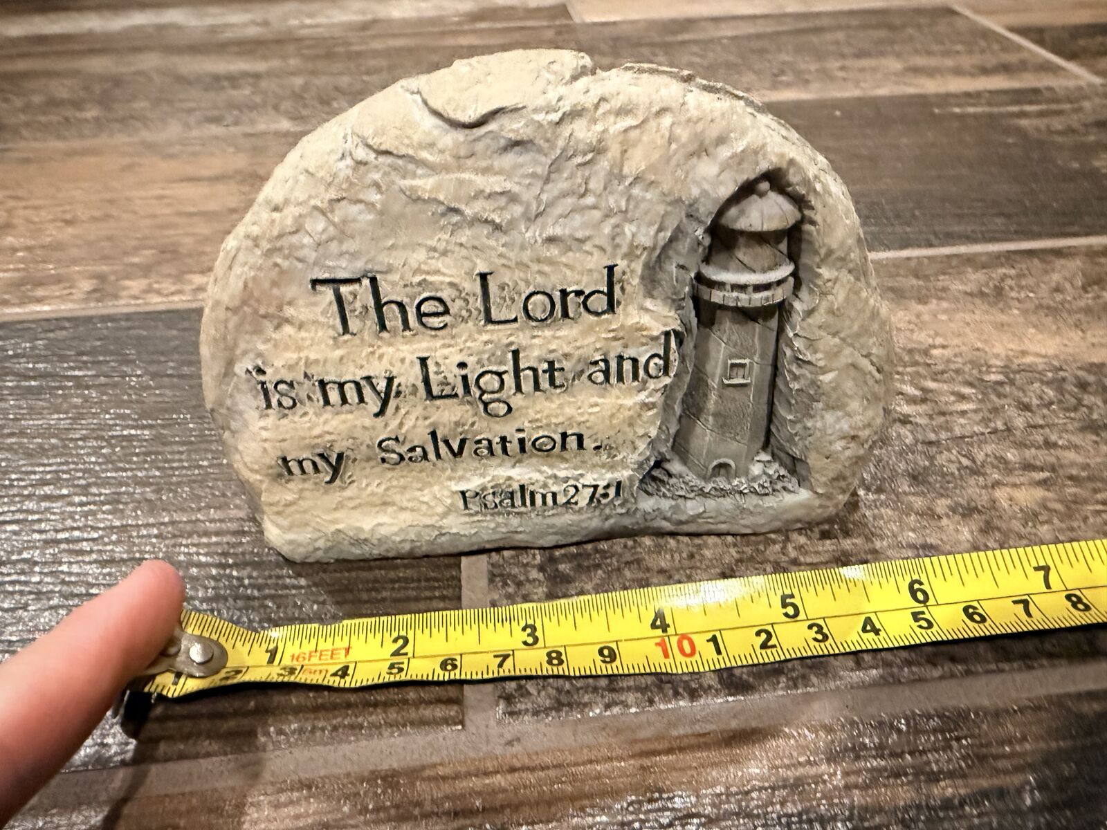 VenmoThis is a cool rock that has been carved with a lighthouse and palms 27:1 scripture. It is very well made and heavy. Measurements in the picture. Cash or Venmo