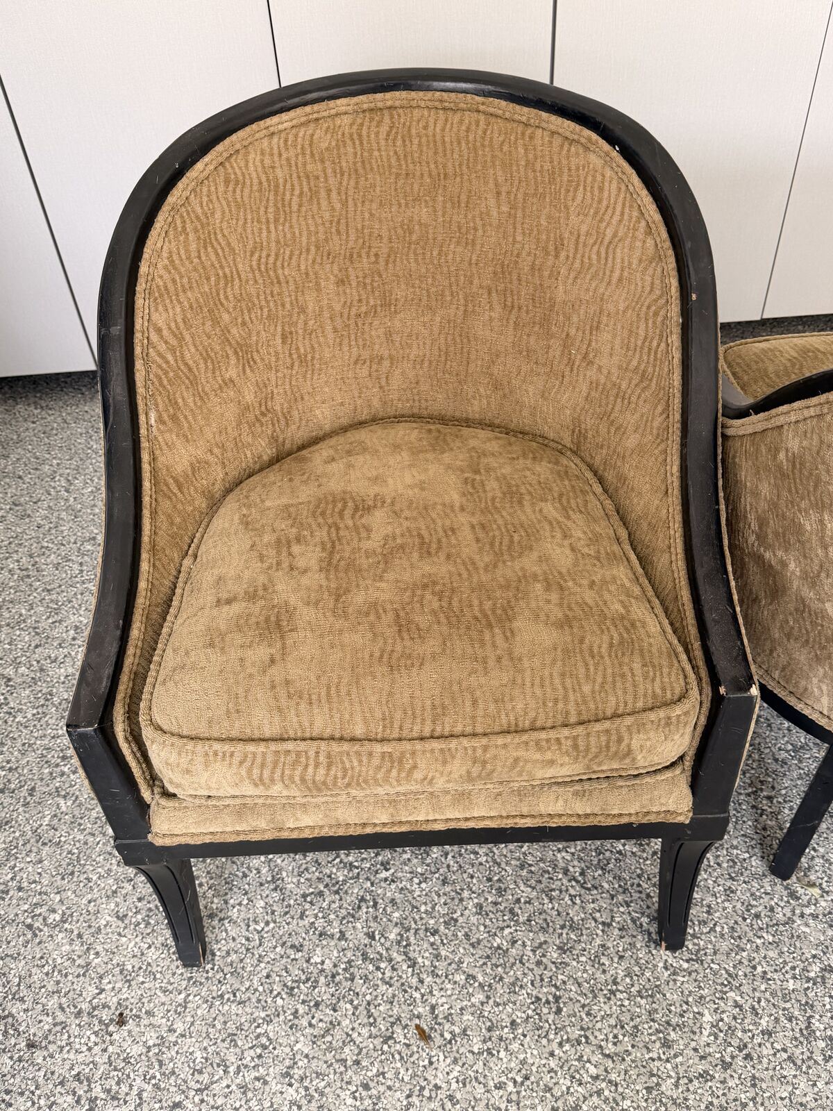 Venmo1960's chairs covered in tan velvet. Very well made. Better than chairs made today. Back 31" high, seat 18.5" high, 24" wide and 20" deep.