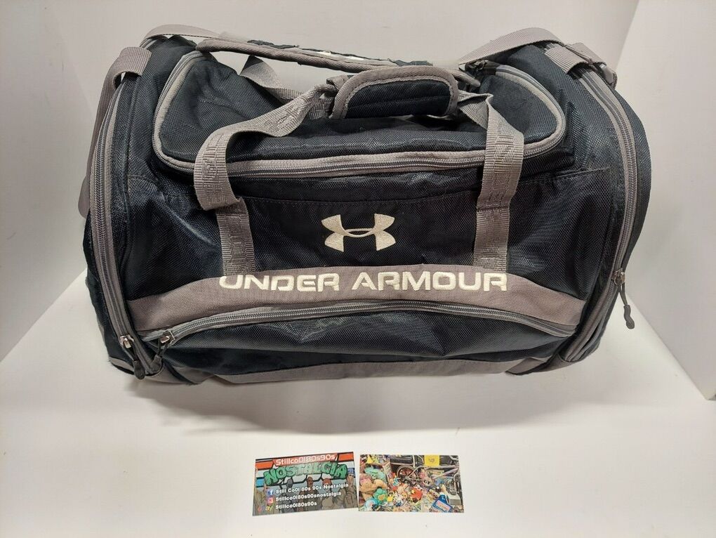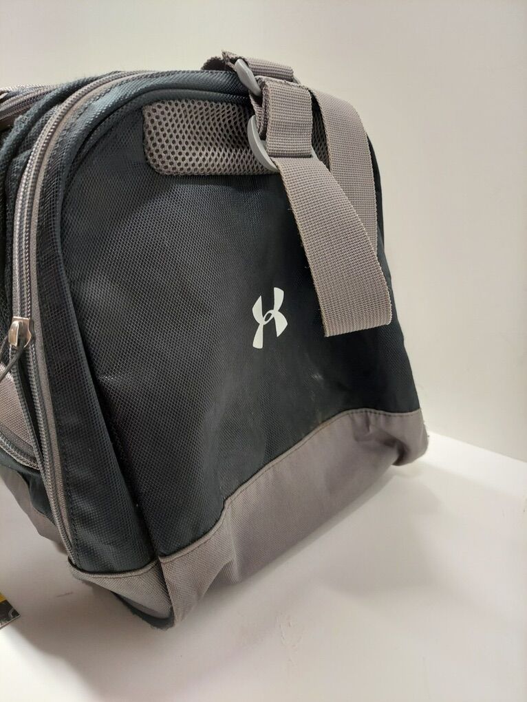 Authentic Under Armour duffle bag in black and gray. Medium-size with multiple zippered compartments—perfect for the gym, travel, sports, or overnight trips.\