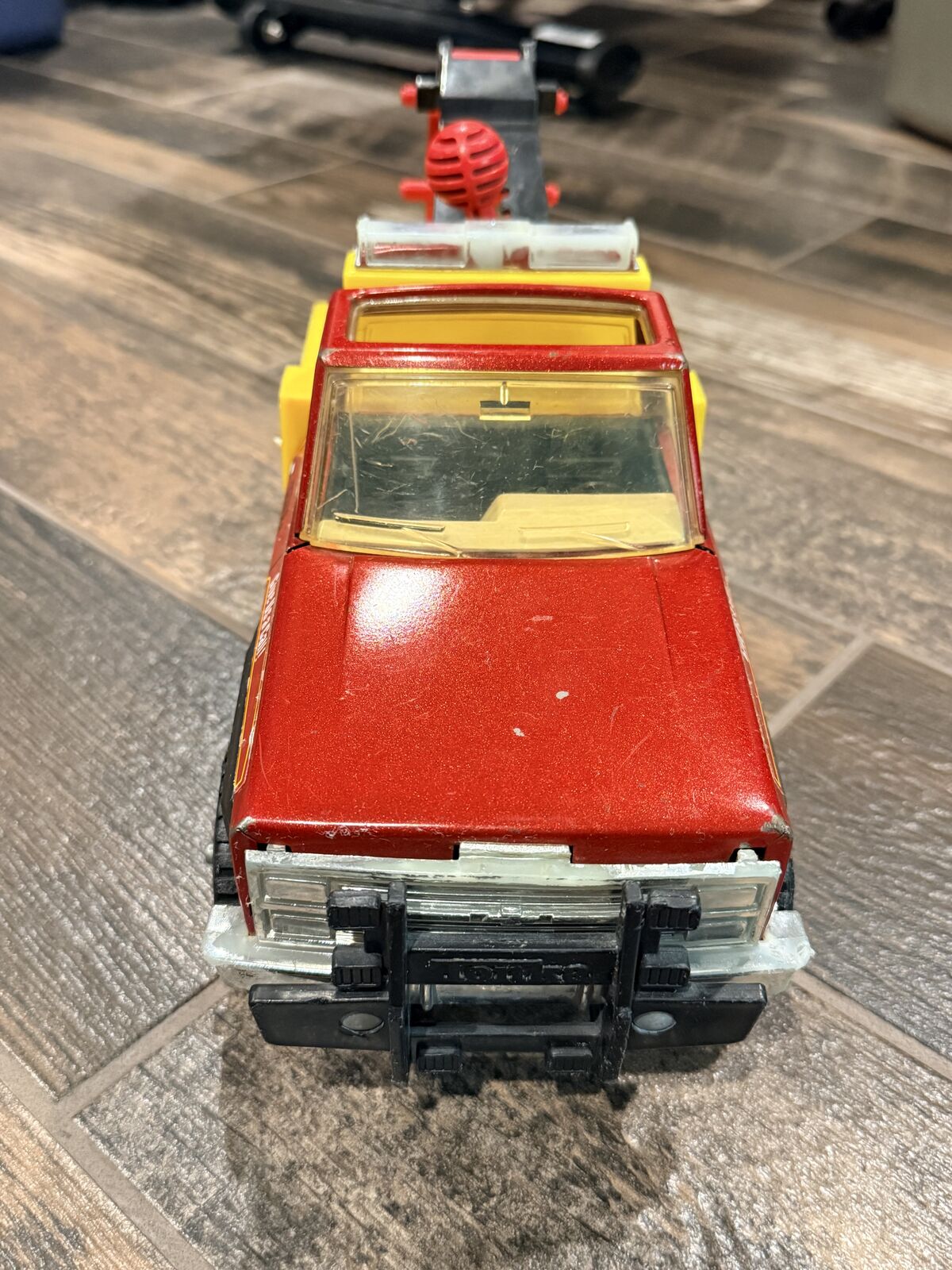 VenmoThis is a vintage Tonka Rovin' Wrecker tow truck toy from 1983. This large-sized recovery truck is made of durable plastic and comes in a colorful multi-colour design. Perfect for collectors of vintage manufacture and diecast & toy vehicles, this toy is sure to be a great addition to your collection. The brand Tonka is well-known for producing high-quality toys, and this model is no exception. It was manufactured in 1983 and has been well-maintained, making it an excellent addition to any collection.