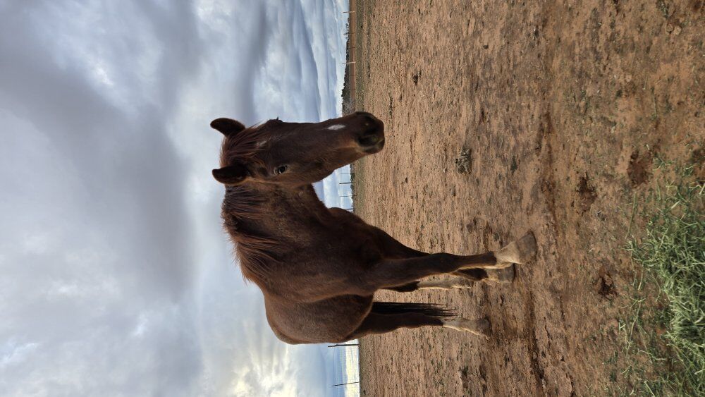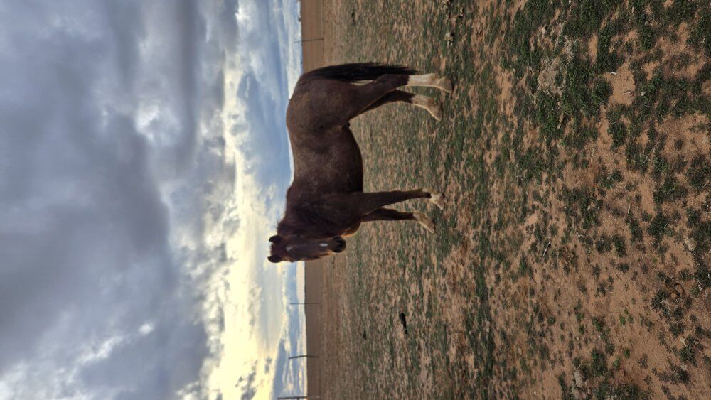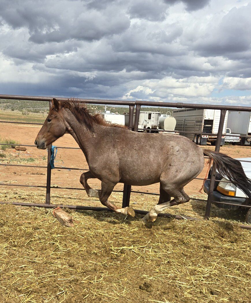 He is untouched so you can start him your way. He has spent most of his life out in big pastures with the herd, but has spent some time in a corral, so he's not crazy or anything.