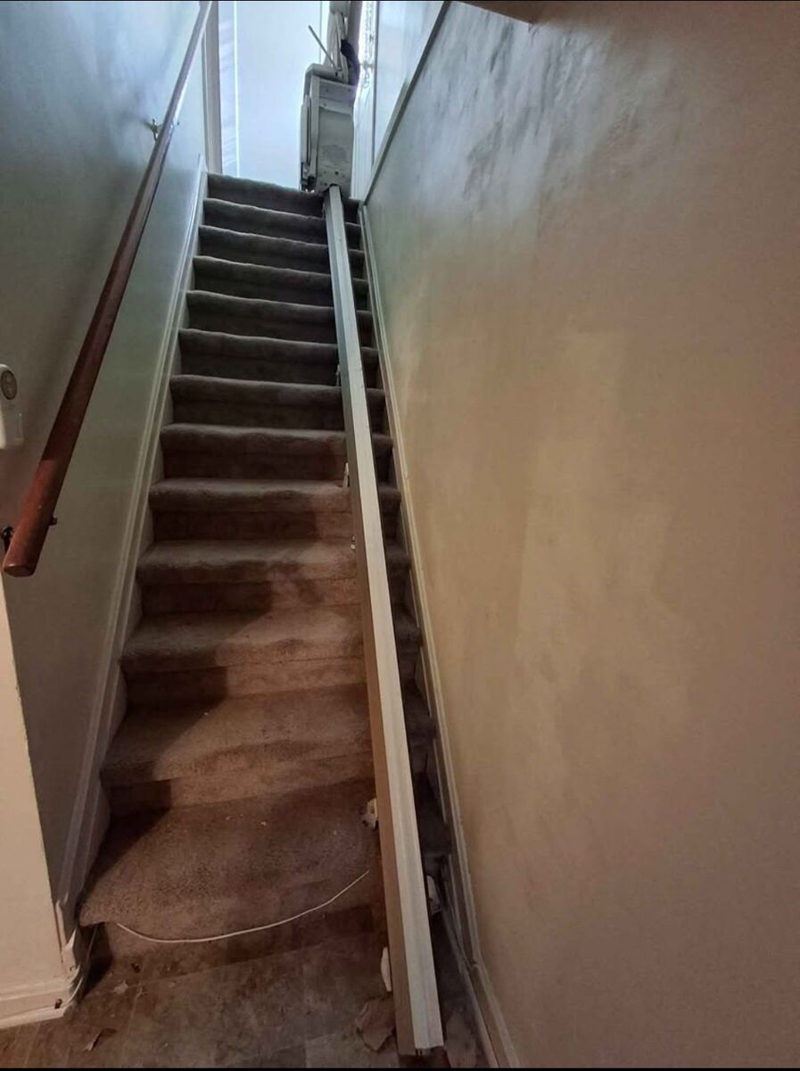 This lift has seen nearly no usage whatsoever, it was installed and used maybe once or twice a month. Covers 14 steps, can be cut if too long. 350 lb. capacity.