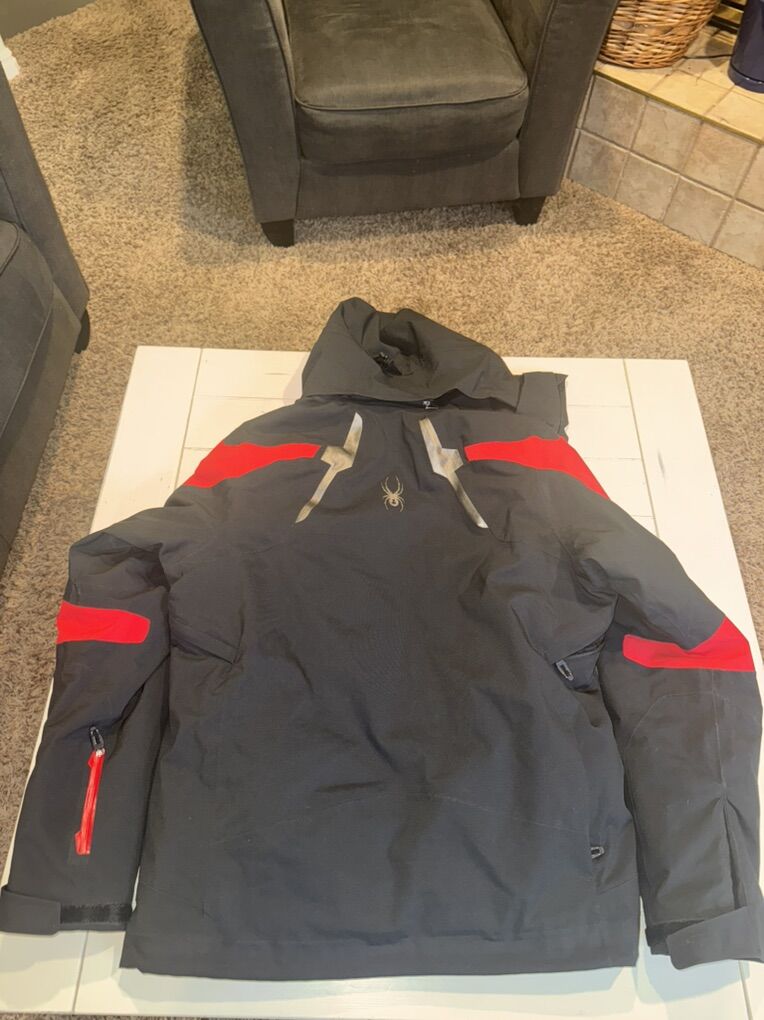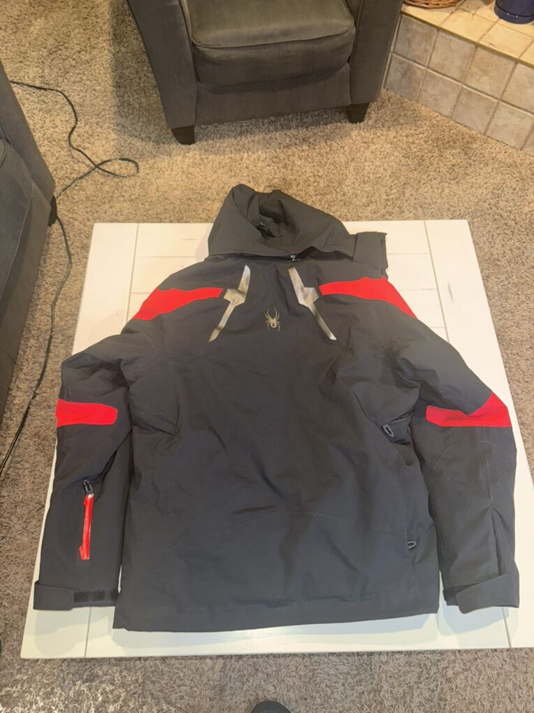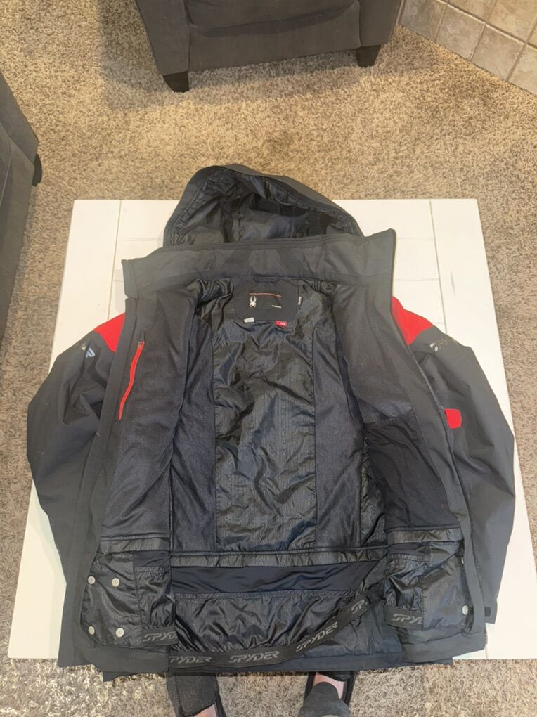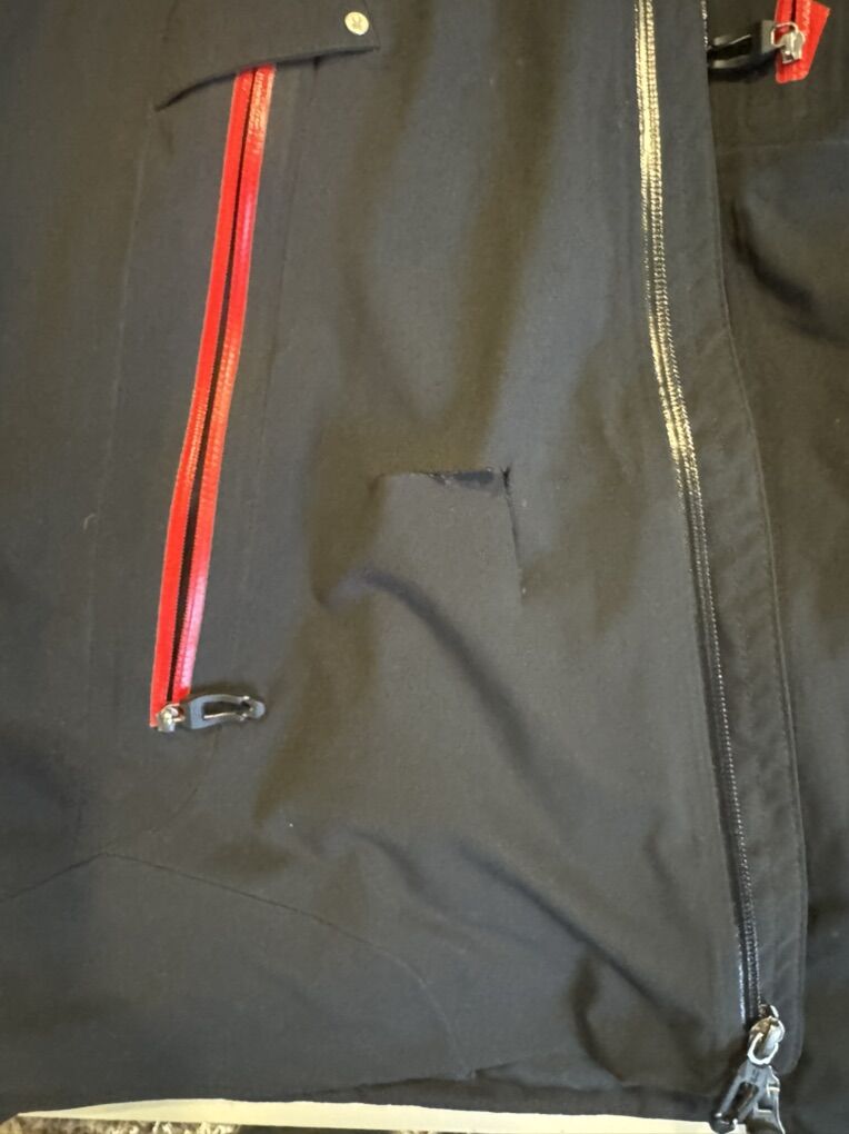 Utah ski-patch repair: I was going to add a Utah or ski themed patch over the tear and decided to leave it simple — you can choose the patch style you want (resort logo, Utah flag, or basic repair patch). Coat is sold as-is with the tear disclosed.