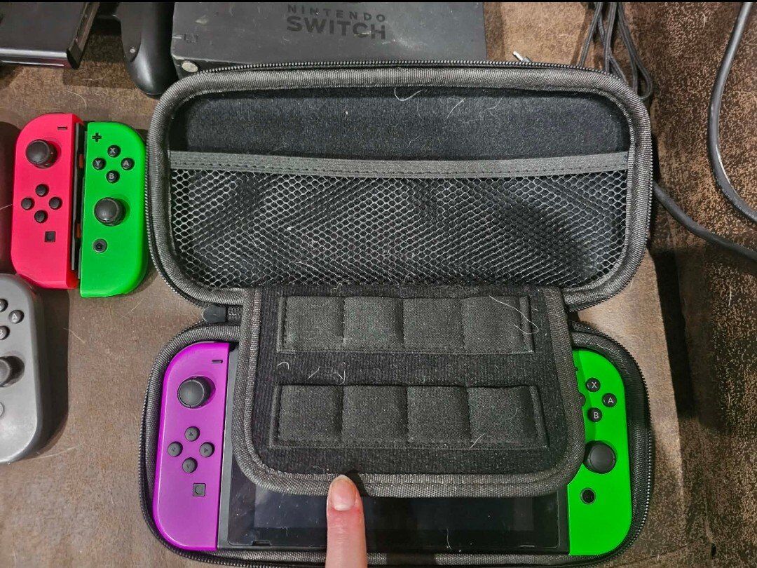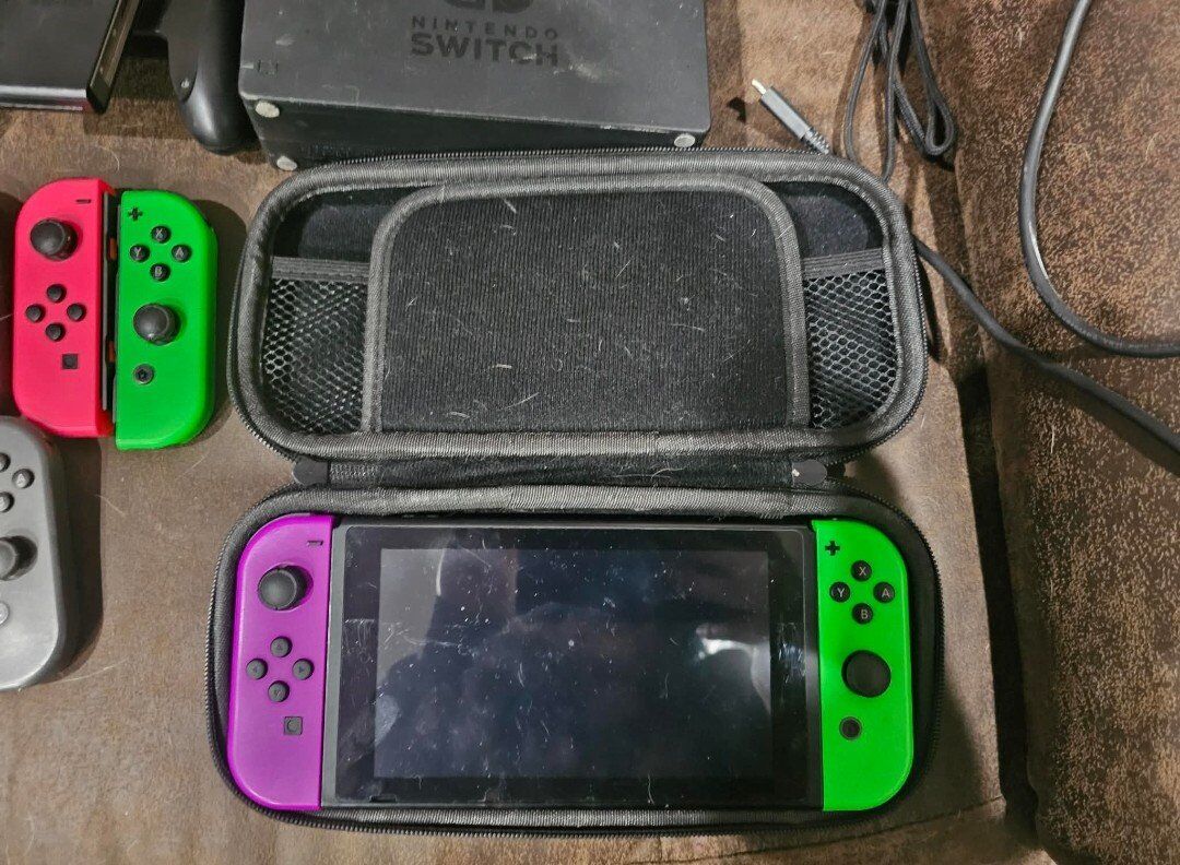 VenmoBought when it first came out, 1 owner and adult owned, it has a screen protector that is still good condition with no significant scratches and no cracks. There is 500gb extended storage as well. 2 of the black joycons have a small amount of drift but still function well. It'll come with everything pictured as well as Animal Crossing and the Five Nights at Freddie's 1-4+ sister location. If you have any questions feel free to ask, thanks.