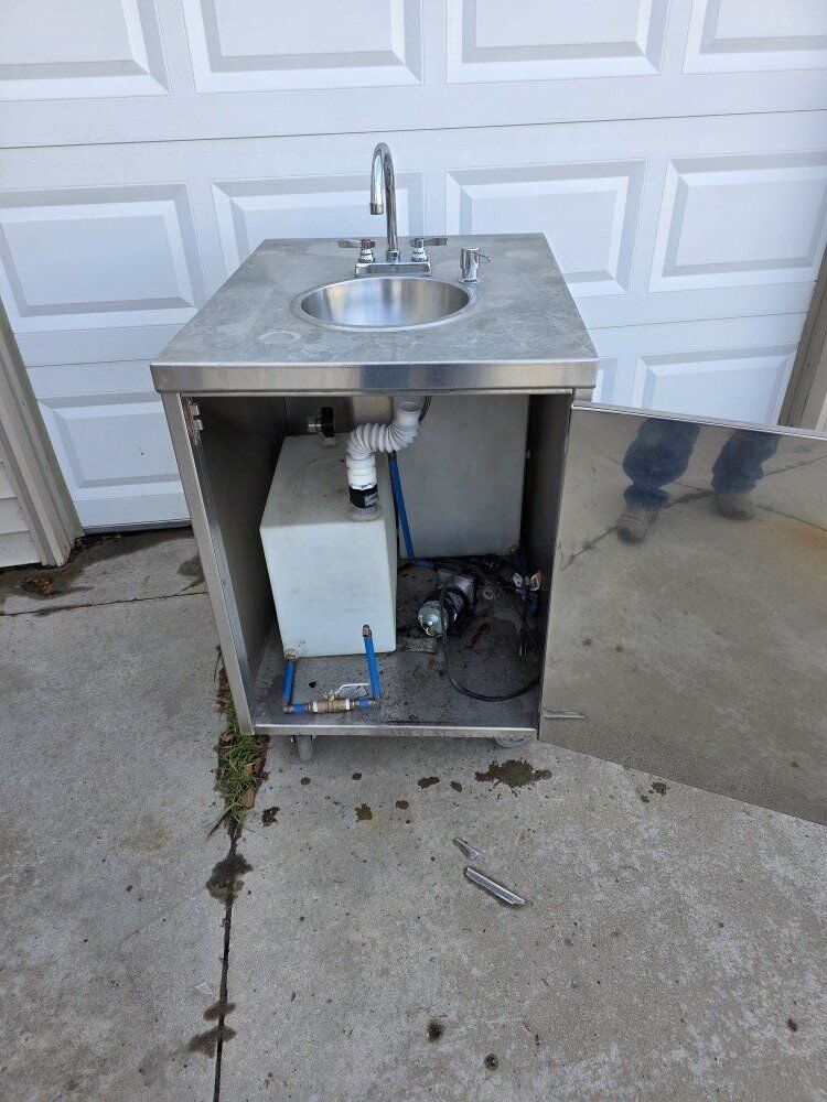 Venmocool little self contained wash basin has a fresh water tank as well as a drain tank pump for the water