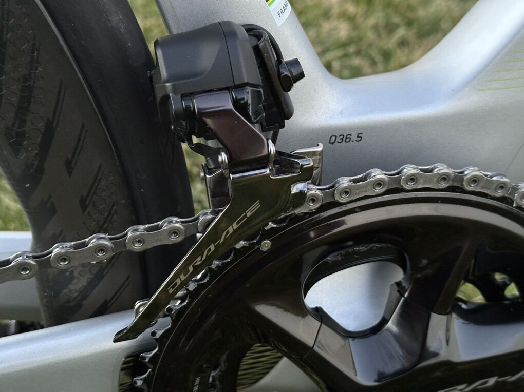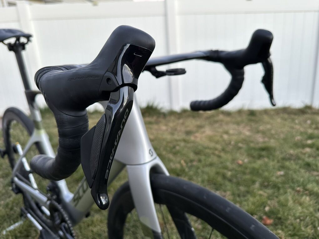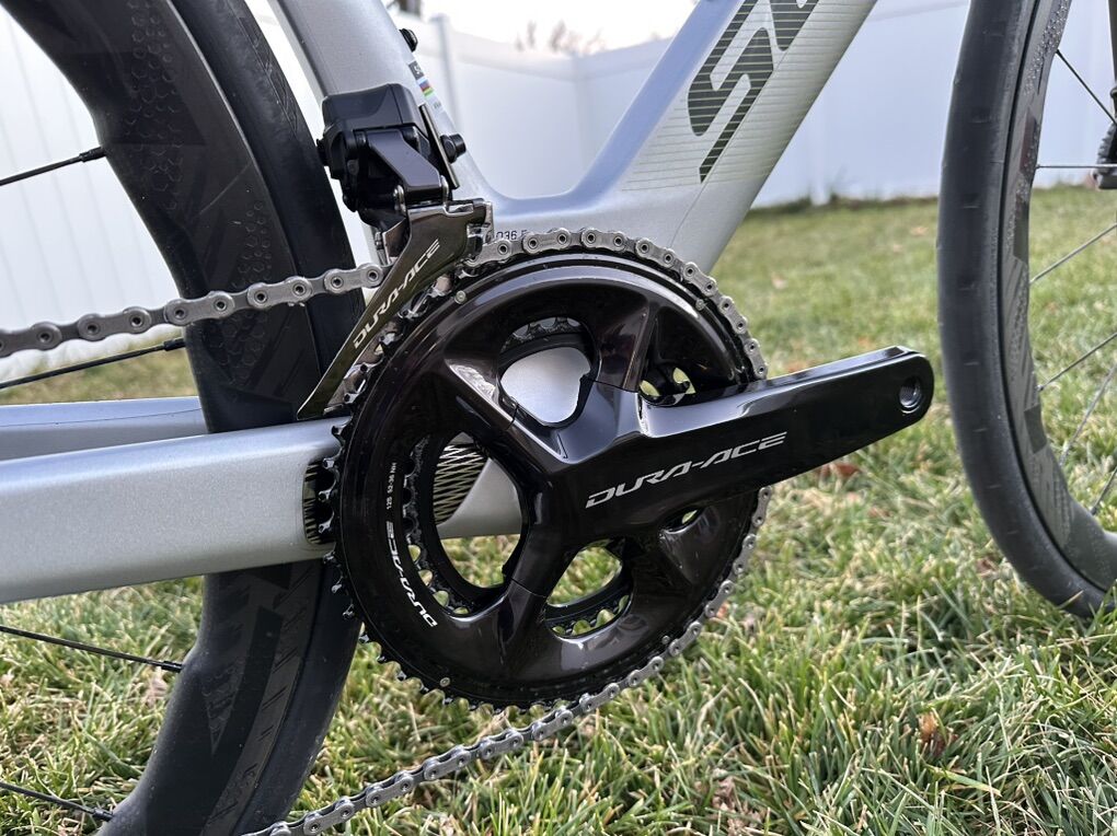 ApplePayScott Foil RC Frameset: Size 56cm “L” Q36.5 Edition Groupset: Full Shimano Dura Ace Di2 9200 12sp Handlebar: Syncros 1-Piece Aerobar 40cm x 110mm Crankset: 52/36 & 170mm Cassette: 12sp 11-34 Bottom Bracket: BBInfinite Wheelset: Zipp 353 NSW with DT Swiss 180 EXP Hubs and Sinc Ceramic Bearings Tires: Continental GP 5000 STR & Aero 111 Seatpost: Duncan Aero SL or Duncan Aero CFT Pedals, Bottle Cages, Charge Cable: Not Included Approximate Weight as Pictured: 6.99kg