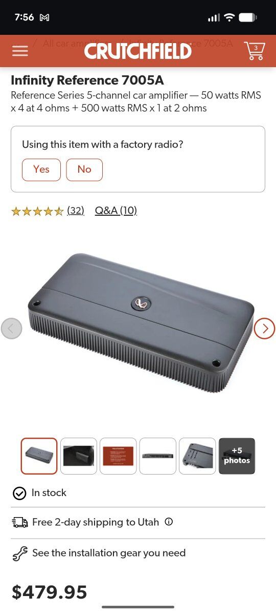 Infinity's Reference 7005A 5-channel amplifier provides a full system solutions without breaking a sweat, and it'll look good doing it. It delivers 50-Watts RMS to each of the front and rear speakers, and a ground pounding 500-Watts RMS to the subwoofer channel — a much better balance of "speaker-to-sub" power than most of conventional 5-channel amplifiers on the market. For higher output, you can bridge the amp to 3-channel mode and power your front speakers with 140-Watts per channel, while still delivering 500-Watts to the subwoofer channel. Speaker-level inputs allow the Reference 7005A to work in almost any system, even if you're keeping your factory radio. Separate high-pass and low-pass crossovers on the front and rear channels and dedicated low-pass crossover, bass boost, and phase switch for the subwoofer channel provides an incredible amount of control and tuning capability. The Reference 7005A is truly a total system solution in one easy to install chassis.