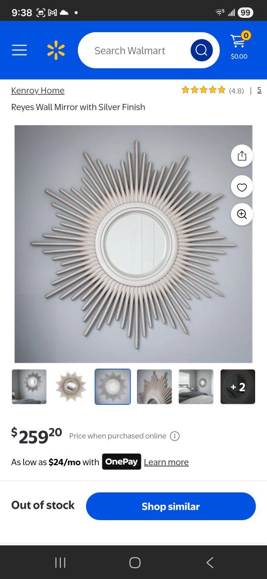 Beautiful 3 Foot Reyes Wall Mirror 3 feet in diameter! Brand New! Still in box!