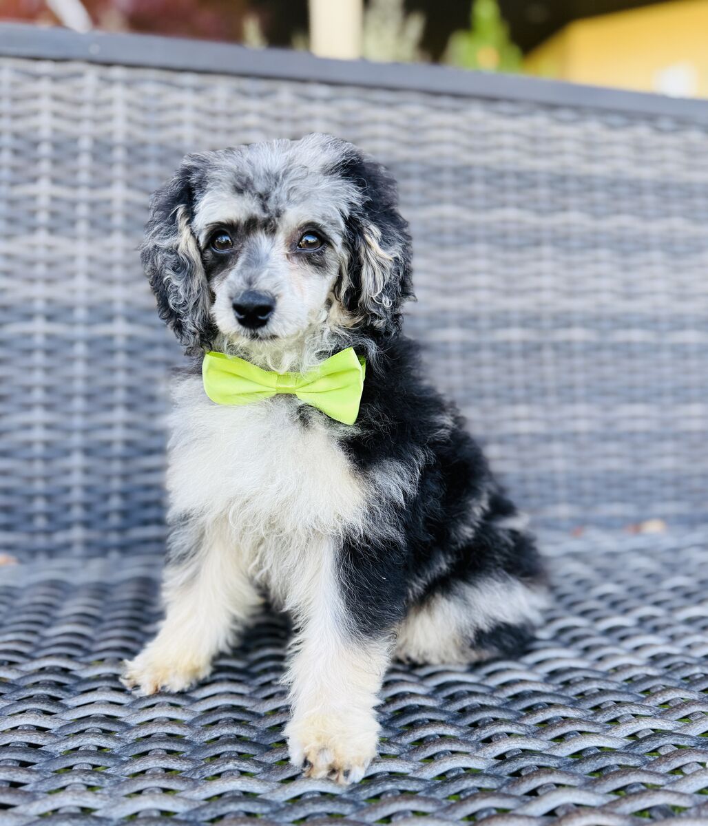 Indy is ideal for breeders looking to produce: Blue merles, Merle phantoms, Chocolate or chocolate-merle combinations, Fully furnished teddy-bear coats, Blue-eyed or blue-flecked puppies, Micro/mini designer doodles,