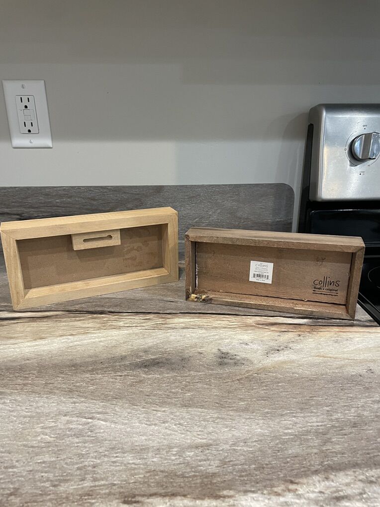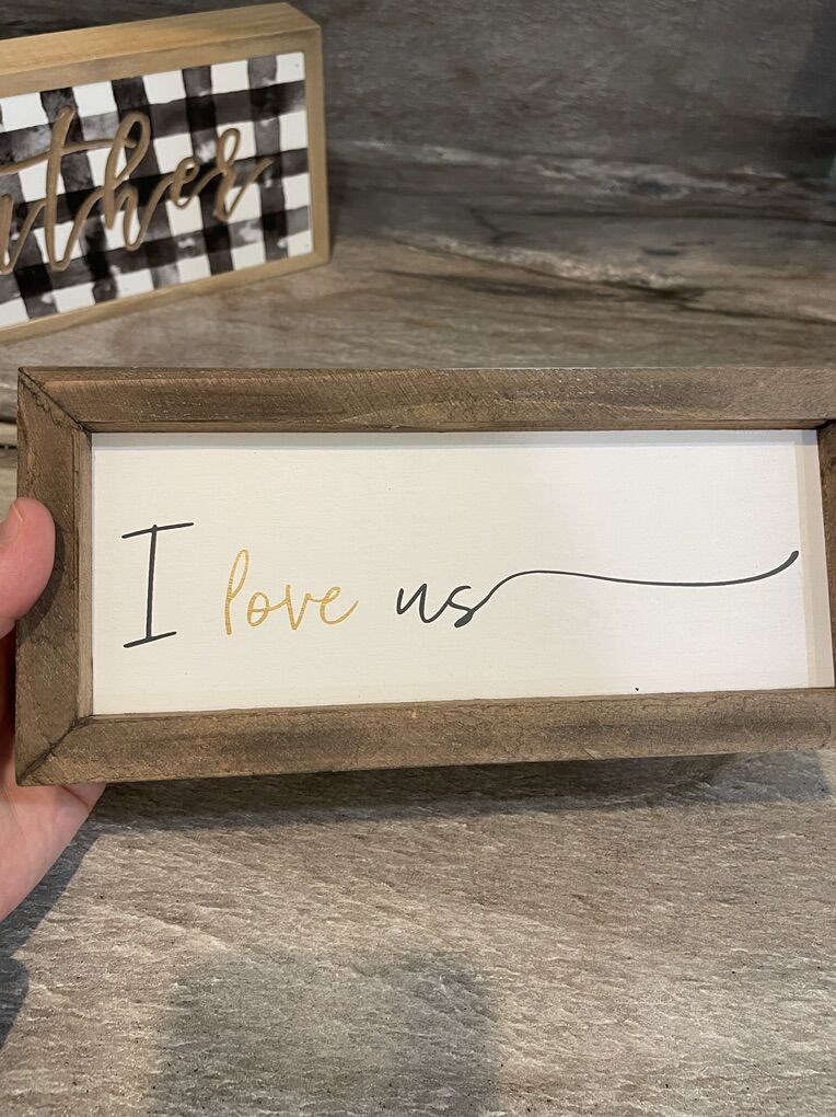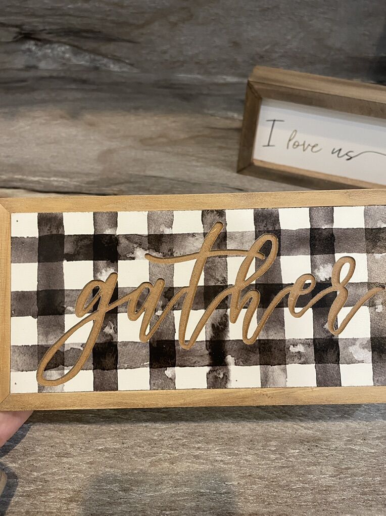 VenmoTwo small wooden decor blocks. “gather” and “I love us”