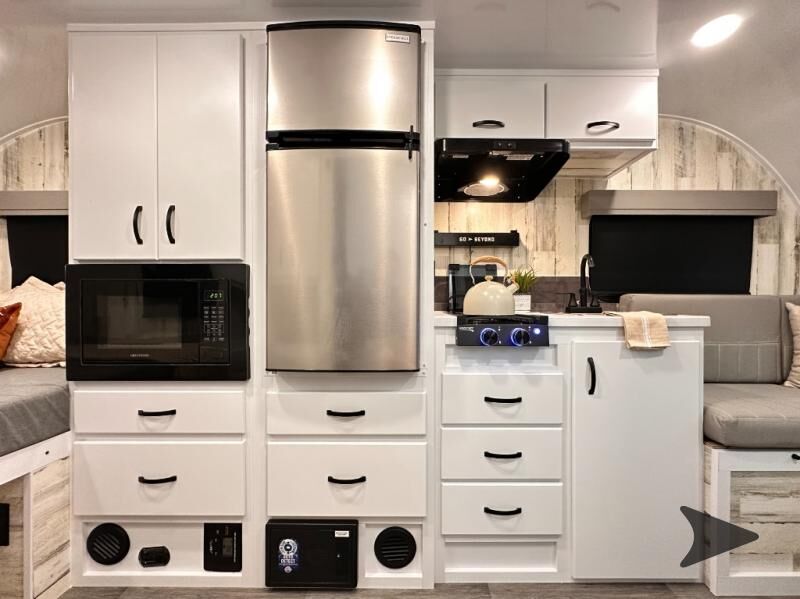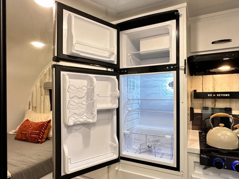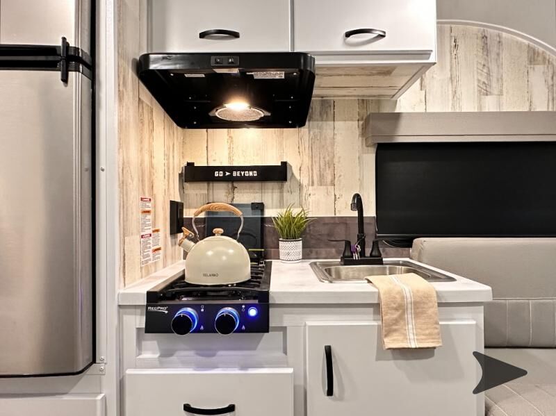 2026 Go Beyond LTD 171FD: Comfortable Camping in a Compact Camper The Go Beyond LTD 171FD travel trailer offers the functionality of a full-size RV in a lightweight, compact design that’s easy to tow with an SUV. It’s an excellent choice for adventurers who want to explore the great outdoors without upgrading their vehicle or dealing with the challenges of towing a large camper.Keep in mind, these are our limited series, a prototype run that allows us to try out all of the suggestions that you have for better RVs. This is a very limited run, and once they're gone, they're gone. Key Features of the Go Beyond LTD 171FD Innovative & Practical Design: The innovative design of theGo Beyond LTD 171FDprovides an impressive amount of practical camping features that you won't find in other RVs of this size. Inside the Go Beyond, you'll find a full kitchen with a dinette, unique bathroom, dedicated queen bed, and loads of storage. Lightweight and Easy to Tow: With a UVW of just 2,646 pounds, the 171FD is lightweight, making it towable by smaller vehicles like SUVs, compact trucks, and some capable minivans. With an exterior length of only 24", its not too long and allows you to access tight camping spots that larger RVs simply can’t reach. Full Kitchen: The Go Beyond’s kitchen is thoughtfully designed to bring the comforts of home on the road. It features a 4.4-cubic-foot refrigerator and freezer, a microwave, and a 2-burner stove, making cooking easy and enjoyable. Adventure-Ready Design: With strong wheel-wellsand heavy-duty off-road tires, and an onboard 100W solar panel to recharge your batteries off-grid, this travel trailer is ready to take on rugged terrain and go wherever your adventures lead. Tons of Storage TheGo Beyond LTD 171FD has an amount of storage that is unparallel. Spanning most of the length of the RV, you can fit brooms, fishing pools, totes, anything that you need to make camping memorable. AtWayfinder RV, our mission is to design RVs that our customers truly love. We listen to real RVers like you to build smarter, more comfortable, and more capable campers. That’s why we created theWayfinder RV Limited Series, exclusive models that let us bring your feedback to life. What is the Wayfinder RV Limited Series?\