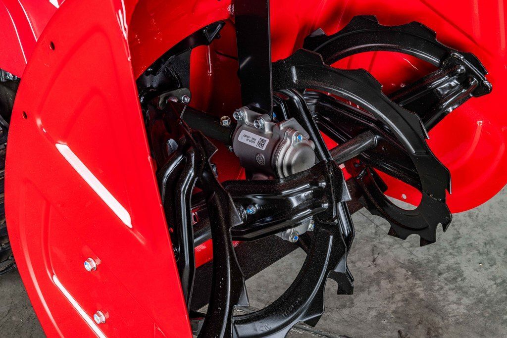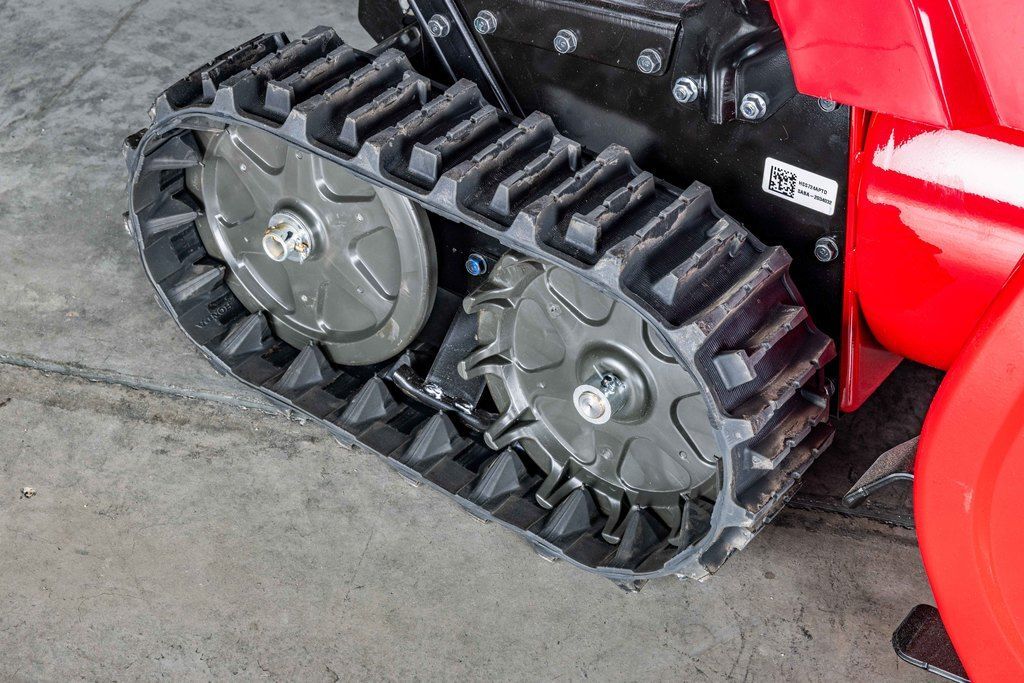 Track drive offers the best traction and control available- Dual track drive provides exceptional traction through most snow conditions. Pliable, low temperature rubber tracks with sure-gripping cleats, providing solid traction and ideal balance. Perfect for complete control on inclines, rough or uneven ground, and icy conditions. Provides a stable platform for attacking hard packed snow and ice.