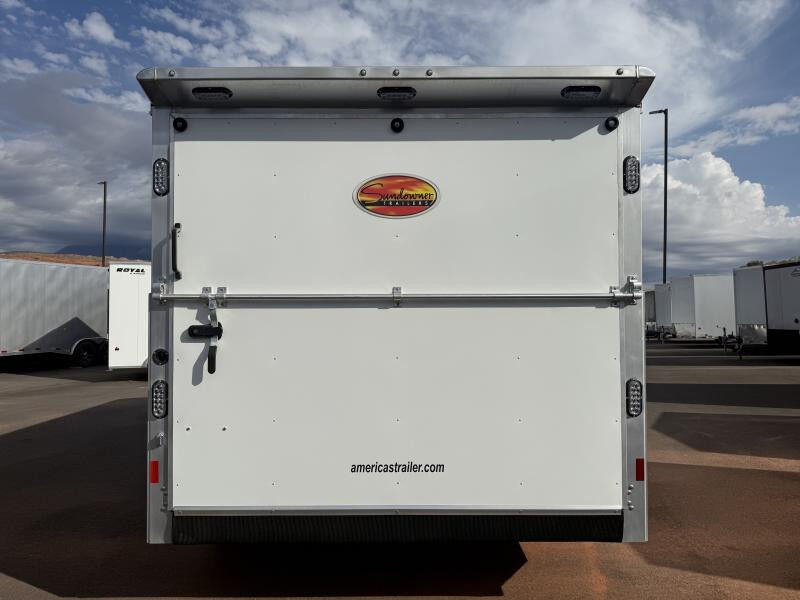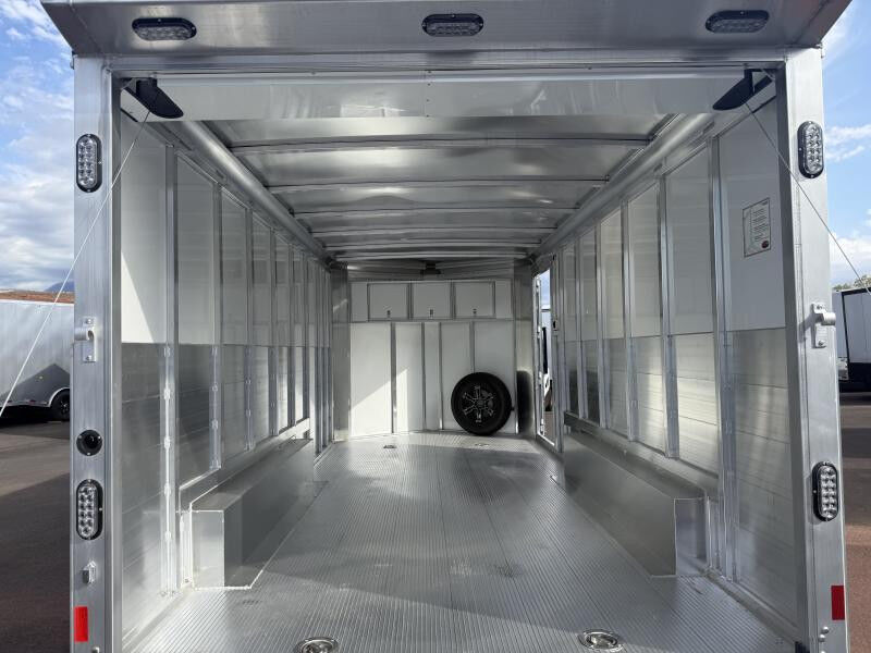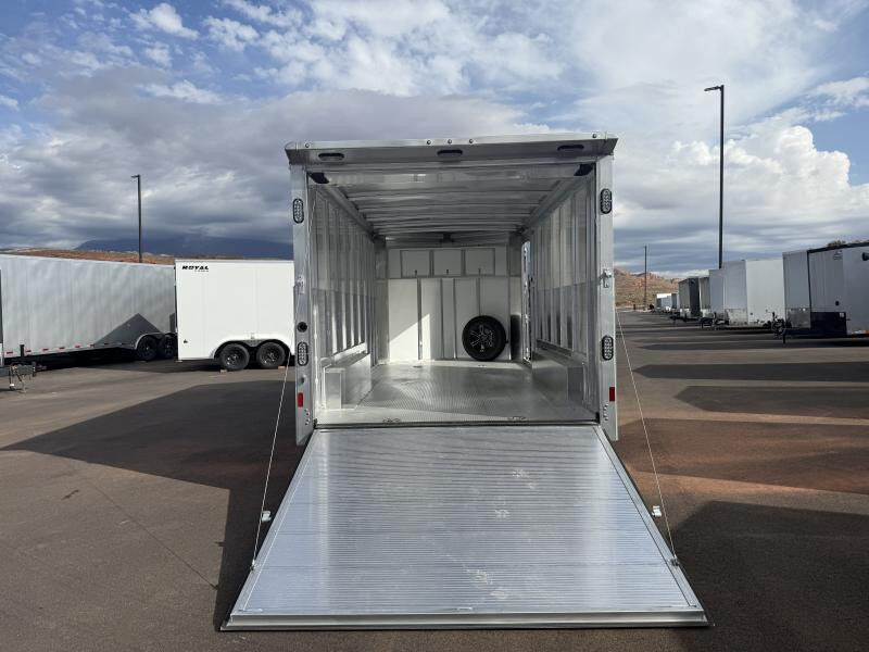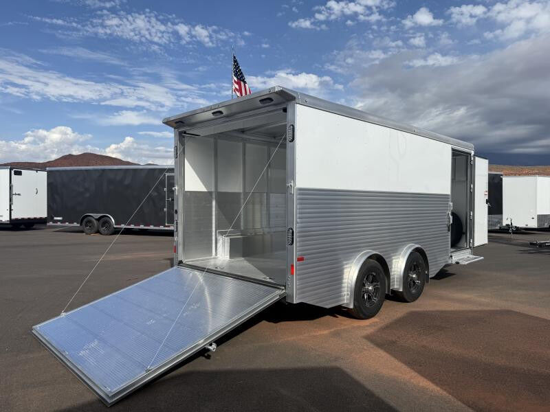 Stock #: SP2029 Aluminum Overhead Cabinet Premium Overhead Cabinets w/Gas Shocks Standard Options: Axles/Brakes 20' Trailer, 5200lb torsion ride spread axles Hitch 2 5/16" Bumper Pull Hitch Construction All Aluminum Floor Aluminum plank floor, aluminum I-beam crossmembers on 12" centers Wall Tube frame wall with integrated roof rail Exterior Full length 48" extruded aluminum sides lower half, prepainted aluminum skin upper half Roof .040 One piece aluminum roof, aluminum roof bows Safety Lights LED marker and tail lights 7200lb torsion ride spread axles All wheel electric brakes Wheels Aluminum wheels Tires Radial tires Access Door 36" Side access door with camper latch with locking hasp Rear Ramp Rear ramp with cable assist Roof Spoiler Rear roof spoiler with 3 LED lights Interior Light 2 LED dome light Tie Downs 4 6000lb floor tie downs Landing Gear Top-wind jack WASATCH TRAILER SALES - LARGEST TRAILER SELECTION IN UTAH Hurricane: (435) 239-8920 | 6477 W Foothills Canyon Dr. Hurricane, UT 84737 View More Inventory: www.wasatchtrailer.com Over 2,000 trailers in stock at Wasatch Trailer Sales! With three convenient Utah locations - Layton, Springville, and Hurricane - finding the perfect trailer has never been easier. We offer one of the largest inventories around, backed by quality you can trust, superior value, and unparalleled pricing. Don't see exactly what you need? Call or text 435-239-8920 with 20+ top manufacturers and easy financing, we'll get you on the road fast! Whatever you haul, we've got the right trailer - in stock year-round!