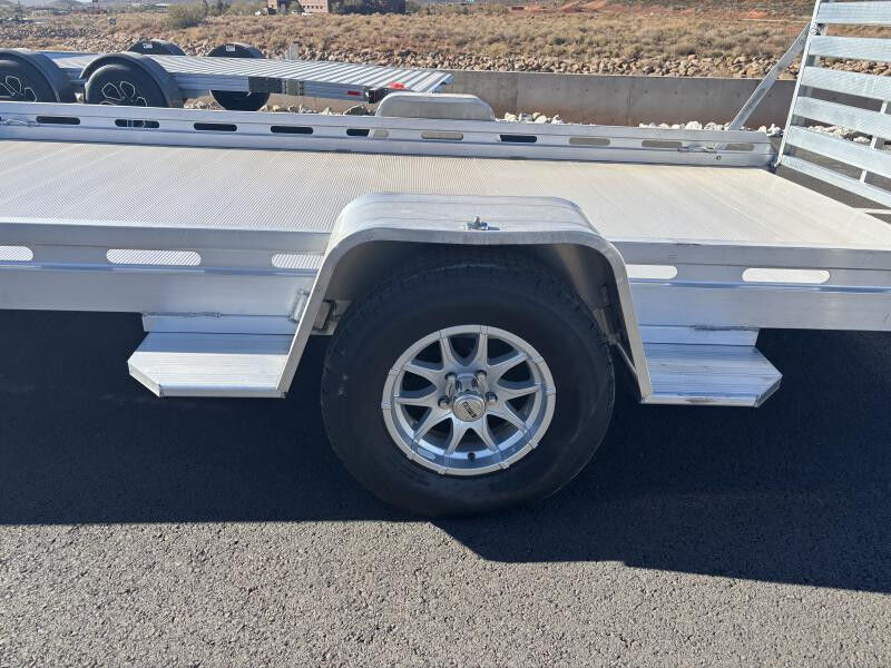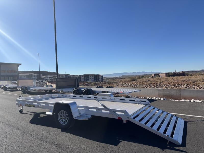 Stock #: AL4072 Trailer Specs: Overall: Length: 18'10" Width: 8'6" Interior/Bed: Length: 14' Width: 77" Weight: 725 lbs. | GVWR: 2,990 lbs. | Payload: 2,265 lbs. Axle(s): 1-3,500 lb. Dexter Torsion Idler Axle w/ EZ Lube Hubs Tire/Wheel: ST205/75R14 Aluminum Wheel | Load Range C Coupler: Type: Bumper Pull | Size 2 5/16" | 7-Way 12V Connector 5 Year Limited Warranty This Unit Includes The Following Options: Straight Tailgate With Slotted Rail Standard Features: Removeable Aluminum Tear Drop Fenders Extruded Aluminum Floor Front And Side Retaining Rails (2) 5' Rear Aluminum Ramps (6) Stake Pockets (4) Recessed 2,000# Stainless D Rings Aluminum Rear Stabilizer Jacks Swivel Tongue Jack Led Lighting Package Safety Chains WASATCH TRAILER SALES - LARGEST TRAILER SELECTION IN UTAH Hurricane: (435) 239-8920 | 6477 W Foothills Canyon Dr. Hurricane, UT 84737 View More Inventory: www.wasatchtrailer.com Over 2,000 trailers in stock at Wasatch Trailer Sales! With three convenient Utah locations - Layton, Springville, and Hurricane - finding the perfect trailer has never been easier. We offer one of the largest inventories around, backed by quality you can trust, superior value, and unparalleled pricing. Don't see exactly what you need? Call or text 435-239-8920 with 20+ top manufacturers and easy financing, we'll get you on the road fast! Whatever you haul, we've got the right trailer - in stock year-round!