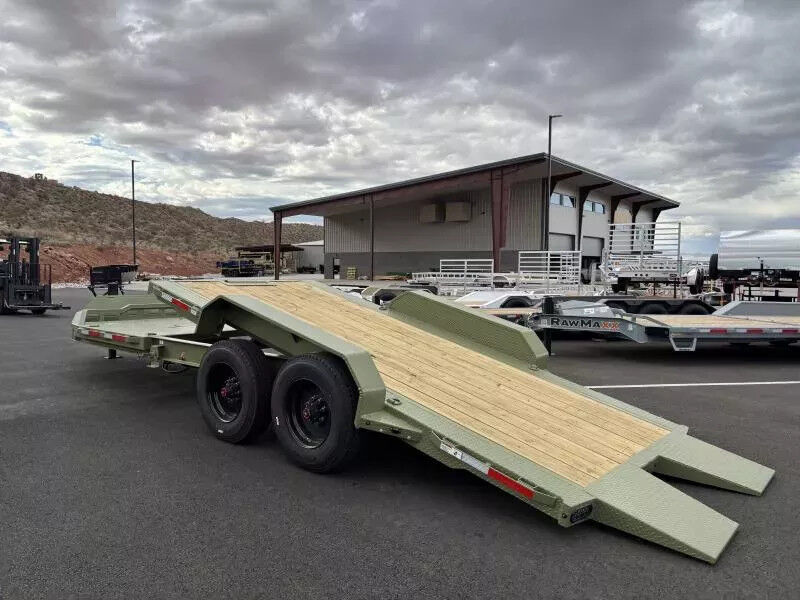 Stock #: RM3126 Weight: 4,916 GVWR: 20,000 Payload Capacity: 15,084 Trailer Specs: 2-10,000 lbs Axles With Brakes 2-5/16" Ball Adjustable Coupler 8" x 13 lb I-Beam Frame 3" Channel/ 16" OC Standard 16' Tilt System: Gravity Up/Down Tilt Angle: 11 Degrees Flooring: 2" Treated Lumber Deck 1 Side Wind Drop Leg Jack- 10,000 lbs Single 12,000 lbs Hydraulic Jack Integrated Tool Box In Tongue In-Deck Spare Tire Toolbox 6" Outer Deck Frame Rub Rail: 2" x 3/8" Flat Bar 3-7/8" x 1-13/16" (ID) Stake Pockets Chain Spool: 1 5/8" OD 2- Flush Mount D-Rings 4- Weld on D-Rings 12G Thread Plate Fenders Winch Plate 3/8" G70 Safety Chains 4-18 Ply ST235/75R17.5 Tires Torsion Suspension Winch Assist Roller/Flow Valve Front Rail Guard 3M DOT Compliant Reflective Tape All Weather Wiring Harness Powder Coat Paint Paint Color: Army Green 5 Year Dexter Axle Warranty 3 Year Structural/ 1 Year Paint Spare- 18Ply Tire 235/75/R17.5-Single Wheel WASATCH TRAILER SALES - LARGEST TRAILER SELECTION IN UTAH Hurricane: (435) 239-8920 | 6477 W Foothills Canyon Dr. Hurricane, UT 84737 View More Inventory: www.wasatchtrailer.com Over 2,000 trailers in stock at Wasatch Trailer Sales! With three convenient Utah locations - Layton, Springville, and Hurricane - finding the perfect trailer has never been easier. We offer one of the largest inventories around, backed by quality you can trust, superior value, and unparalleled pricing. Don't see exactly what you need? Call or text 435-239-8920 with 20+ top manufacturers and easy financing, we'll get you on the road fast! Whatever you haul, we've got the right trailer - in stock year-round!