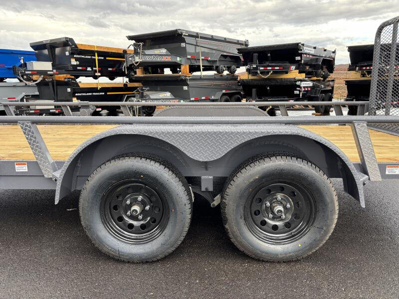 Stock #: RM3127 Weight: 1,896 GVWR: 7,000 Payload Capacity: 5,104 Trailer Specs: 2-3,500 lbs Axles With Brakes 2 5/16" Ball Adjustable Coupler 1-7,000 lbs Side Wind Drop Leg Jack 4" Channel Main Frame 4" Channel Tongue 2" x 3/16" Angle Iron/ 16" OC 3-7/8" x 1-13/16" (ID) Stake Pockets 16G Round Fenders 4' Mesh Flip Ramp 2" Round Tubing Rail Spare Tire Mount 4 Weld on D-Rings 1/4" G70 Safety Chains 4-8 Ply ST205/75R15 Tires Spring Suspension 3M DOT Compliant Reflective Tape All Weather Wiring Harness Powder Coat Paint 5 Year Dexter Axle Warranty 3 Year Structural/ 1 Year Paint Paint Color: Shadow Grey WASATCH TRAILER SALES - LARGEST TRAILER SELECTION IN UTAH Hurricane: (435) 239-8920 | 6477 W Foothills Canyon Dr. Hurricane, UT 84737 View More Inventory: www.wasatchtrailer.com Over 2,000 trailers in stock at Wasatch Trailer Sales! With three convenient Utah locations - Layton, Springville, and Hurricane - finding the perfect trailer has never been easier. We offer one of the largest inventories around, backed by quality you can trust, superior value, and unparalleled pricing. Don't see exactly what you need? Call or text 435-239-8920 with 20+ top manufacturers and easy financing, we'll get you on the road fast! Whatever you haul, we've got the right trailer - in stock year-round!