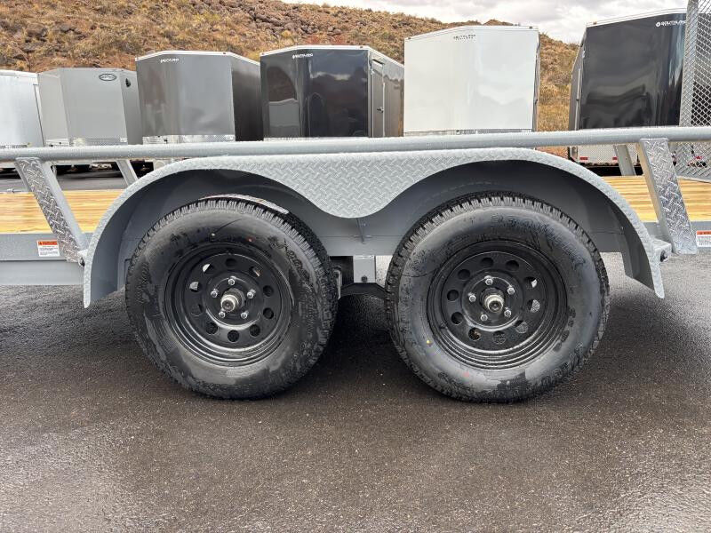 Stock #: RM3128 Weight: 1,896 GVWR: 7,000 Payload Capacity: 5,104 Trailer Specs: 2-3,500 lbs Axles With Brakes 2 5/16" Ball Adjustable Coupler 1-7,000 lbs Side Wind Drop Leg Jack 4" Channel Main Frame 4" Channel Tongue 2" x 3/16" Angle Iron/ 16" OC 3-7/8" x 1-13/16" (ID) Stake Pockets 16G Round Fenders 4' Mesh Flip Ramp 2" Round Tubing Rail Spare Tire Mount 4 Weld on D-Rings 1/4" G70 Safety Chains 4-8 Ply ST205/75R15 Tires Spring Suspension 3M DOT Compliant Reflective Tape All Weather Wiring Harness Powder Coat Paint 5 Year Dexter Axle Warranty 3 Year Structural/ 1 Year Paint Paint Color: Lava Grey WASATCH TRAILER SALES - LARGEST TRAILER SELECTION IN UTAH Hurricane: (435) 239-8920 | 6477 W Foothills Canyon Dr. Hurricane, UT 84737 View More Inventory: www.wasatchtrailer.com Over 2,000 trailers in stock at Wasatch Trailer Sales! With three convenient Utah locations - Layton, Springville, and Hurricane - finding the perfect trailer has never been easier. We offer one of the largest inventories around, backed by quality you can trust, superior value, and unparalleled pricing. Don't see exactly what you need? Call or text 435-239-8920 with 20+ top manufacturers and easy financing, we'll get you on the road fast! Whatever you haul, we've got the right trailer - in stock year-round!