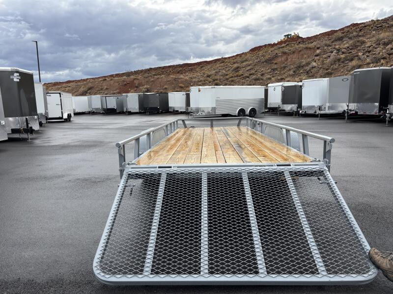 2-3,500 lbs Axles With Brakes 2 5/16" Ball Adjustable Coupler 1-7,000 lbs Side Wind Drop Leg Jack 4" Channel Main Frame 4" Channel Tongue 2" x 3/16" Angle Iron/ 16" OC 3-7/8" x 1-13/16" (ID) Stake Pockets 16G Round Fenders 4' Mesh Flip Ramp 2" Round Tubing Rail Spare Tire Mount 4 Weld on D-Rings 1/4" G70 Safety Chains 4-8 Ply ST205/75R15 Tires Spring Suspension 3M DOT Compliant Reflective Tape All Weather Wiring Harness Powder Coat Paint 5 Year Dexter Axle Warranty 3 Year Structural/ 1 Year Paint Paint Color: Lava Grey WASATCH TRAILER SALES - LARGEST TRAILER SELECTION IN UTAH Hurricane: (435) 239-8920 | 6477 W Foothills Canyon Dr. Hurricane, UT 84737 View More Inventory: www.wasatchtrailer.com Over 2,000 trailers in stock at Wasatch Trailer Sales! With three convenient Utah locations - Layton, Springville, and Hurricane - finding the perfect trailer has never been easier. We offer one of the largest inventories around, backed by quality you can trust, superior value, and unparalleled pricing. Don't see exactly what you need? Call or text 435-239-8920 with 20+ top manufacturers and easy financing, we'll get you on the road fast! Whatever you haul, we've got the right trailer - in stock year-round!