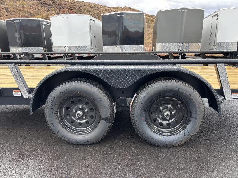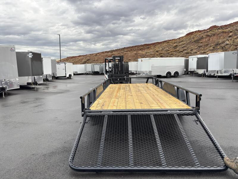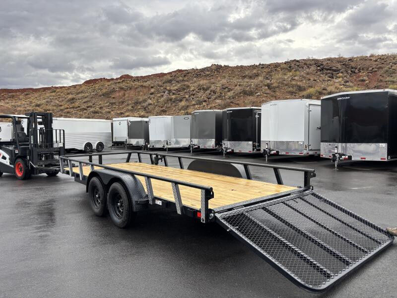 2-3,500 lbs Axles With Brakes 2 5/16" Ball Adjustable Coupler 1-7,000 lbs Side Wind Drop Leg Jack 4" Channel Main Frame 4" Channel Tongue 2" x 3/16" Angle Iron/ 16" OC 3-7/8" x 1-13/16" (ID) Stake Pockets 16G Round Fenders 4' Mesh Flip Ramp 2" Round Tubing Rail Spare Tire Mount 4 Weld on D-Rings 1/4" G70 Safety Chains 4-8 Ply ST205/75R15 Tires Spring Suspension 3M DOT Compliant Reflective Tape All Weather Wiring Harness Powder Coat Paint 5 Year Dexter Axle Warranty 3 Year Structural/ 1 Year Paint Paint Color: Mid-Knight Black WASATCH TRAILER SALES - LARGEST TRAILER SELECTION IN UTAH Hurricane: (435) 239-8920 | 6477 W Foothills Canyon Dr. Hurricane, UT 84737 View More Inventory: www.wasatchtrailer.comOver 2,000 trailers in stock at Wasatch Trailer Sales! With three convenient Utah locations - Layton, Springville, and Hurricane - finding the perfect trailer has never been easier. We offer one of the largest inventories around, backed by quality you can trust, superior value, and unparalleled pricing. Don't see exactly what you need? Call or text 435-239-8920 with 20+ top manufacturers and easy financing, we'll get you on the road fast! Whatever you haul, we've got the right trailer - in stock year-round!
