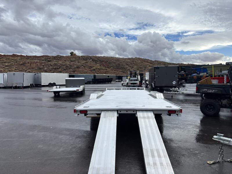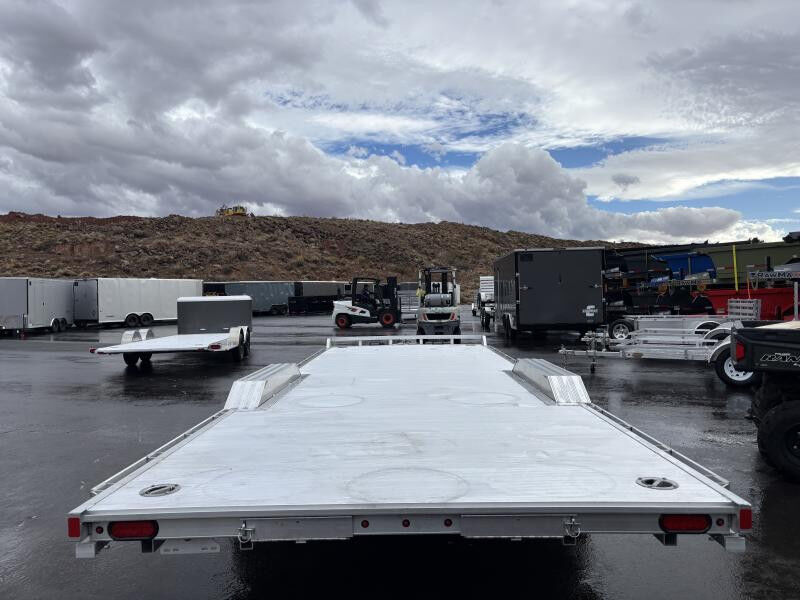 Aluminum Drive Over Fenders Extruded Aluminum Floor Front Retaining Rail A-Framed Aluminum Tongue 4) Recessed Tie Rings, SS #5000 Rub Rail Welded To Stake Pockets 2) Rear Stabilizer Legs (1 per side) Swivel Tongue Jack, 1500# capacity 2) Front Load Lights LED Lighting Package Safety Chains 2) 7? Aluminum ramps