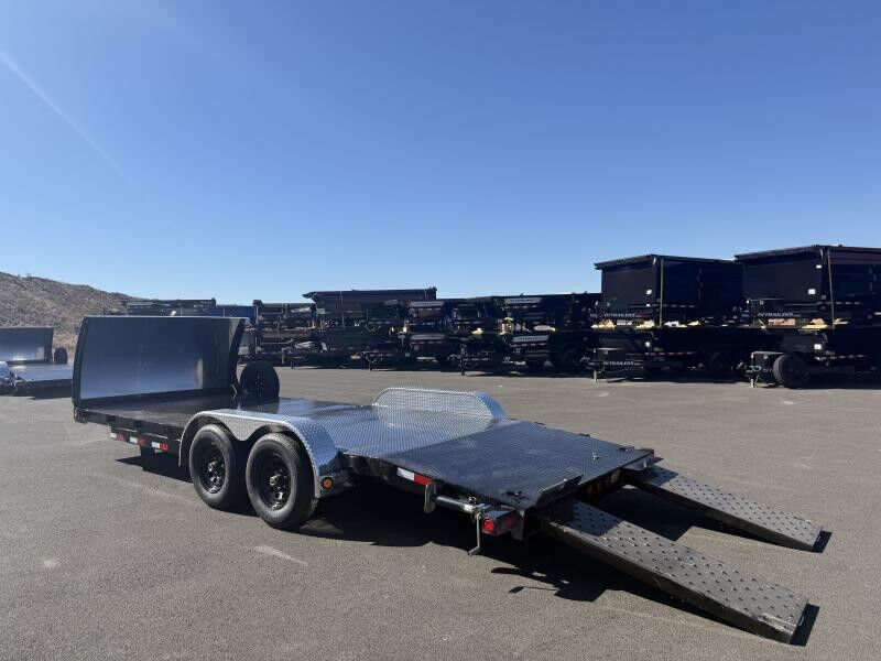 WIDTH: 83" LENGTH: 20' DOOR(S)/RAMP(S): 5' Rear Slid-In Ramps WEIGHT: 2,555 lb GVWR: 9,899 lb PAYLOAD: 7,344 lb AXLE(S): Tandem 5,200 lb Electric Spring Axles COUPLER: 2 5/16"\