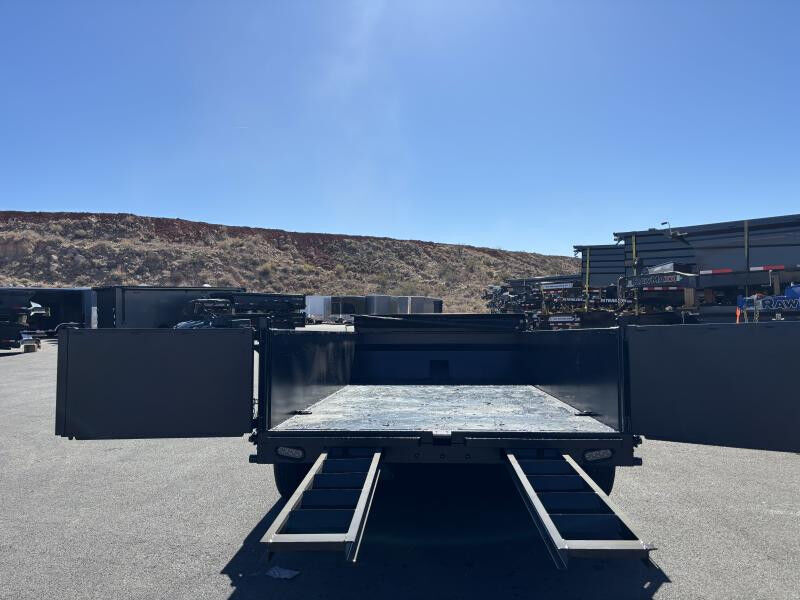 2-7,000 lbs Axles With Brakes 2 5/16" Ball Adjustable Coupler 8" x 13 lbs I Beam Frame Engineered I Beam Frame 3" Channel/ 16" OC 1 Side Wind Drop Leg Jack- 10,000 lbs Tool Box with Pump, Battery & Charger Inside Width: 83"- Side Height: 19" 12G Formed Walls- 10G Steel 50 Floor 12G Thread Plate Steel Fenders 3-7/8" x 1-13/16" (ID) Stake Pockets 4 D-Rings (Welded Inside Corners) 3 Way Doors Tilt Angle: 41 Degrees 6' Slide-In Channel Ramps Hydraulic-Power Up-Power Down 5 16 Cylinder Scissor Lift Manual Tarp Kit 4-10 Ply ST235/80R16 Tires Spring Suspension 3/8" G70 Safety Chains 3M DOT Compliant Reflective Tape All Weather Wiring Harness Powder Coat Paint Mid-Knight Black 5 Year Dexter Axle Warranty 3 Year Structural/ 1 Year Paint