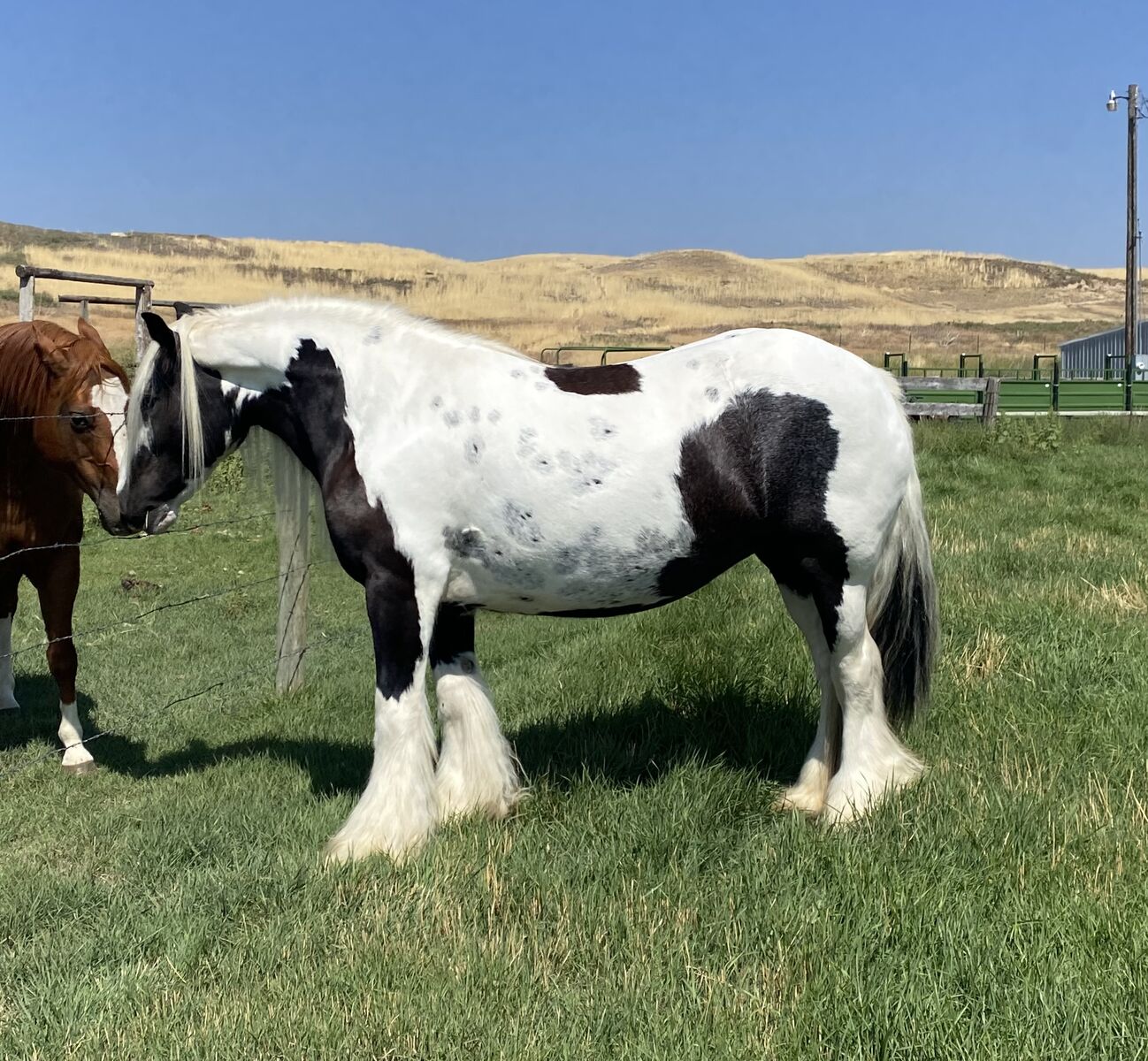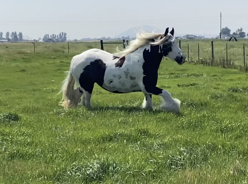 This super cool mare stands just under 14.1 hands. She is broke to ride (video available). She was also broke to drive by her previous owner but we have only driven her once. She is registered with the GVHS and is 10 yrs old. She is currently in foal to the beautiful blue roan stallion KSF Enchanted Forrest for a 2026 foal. She is a great mom.